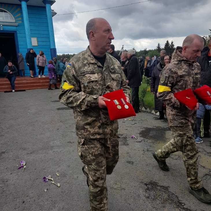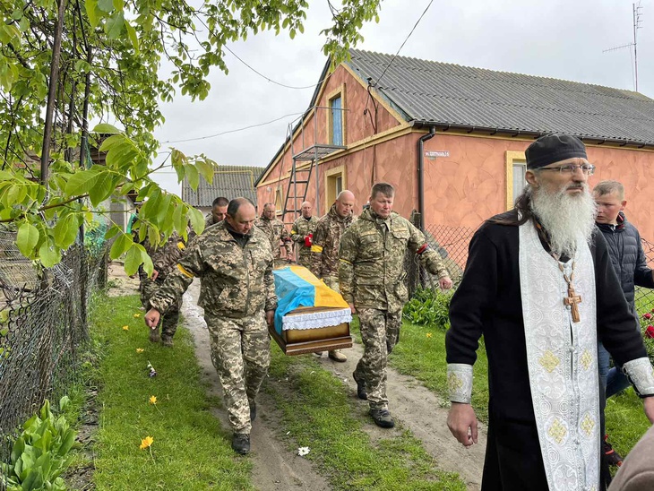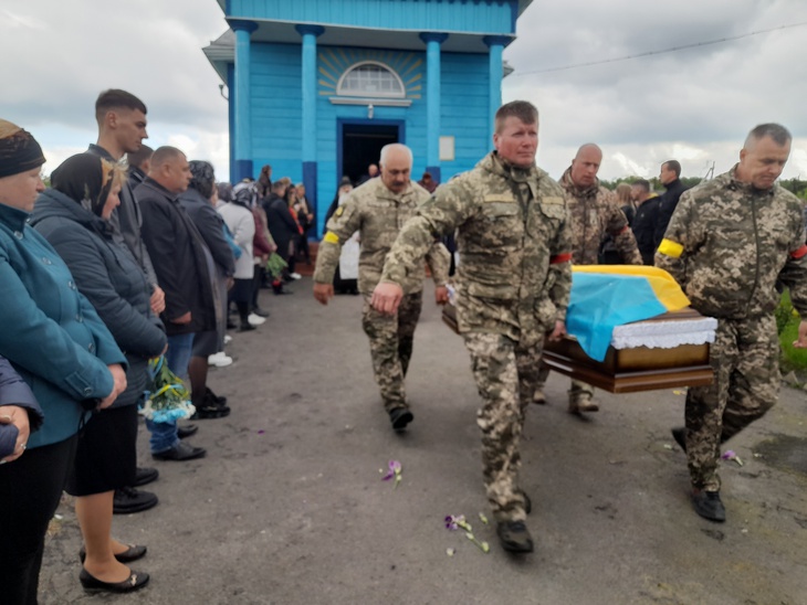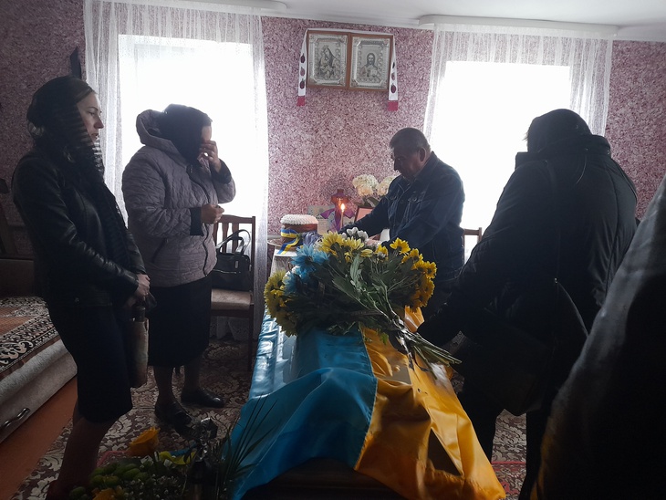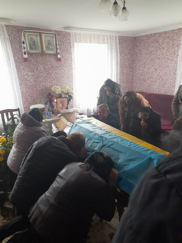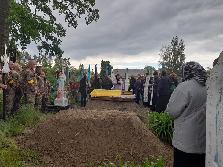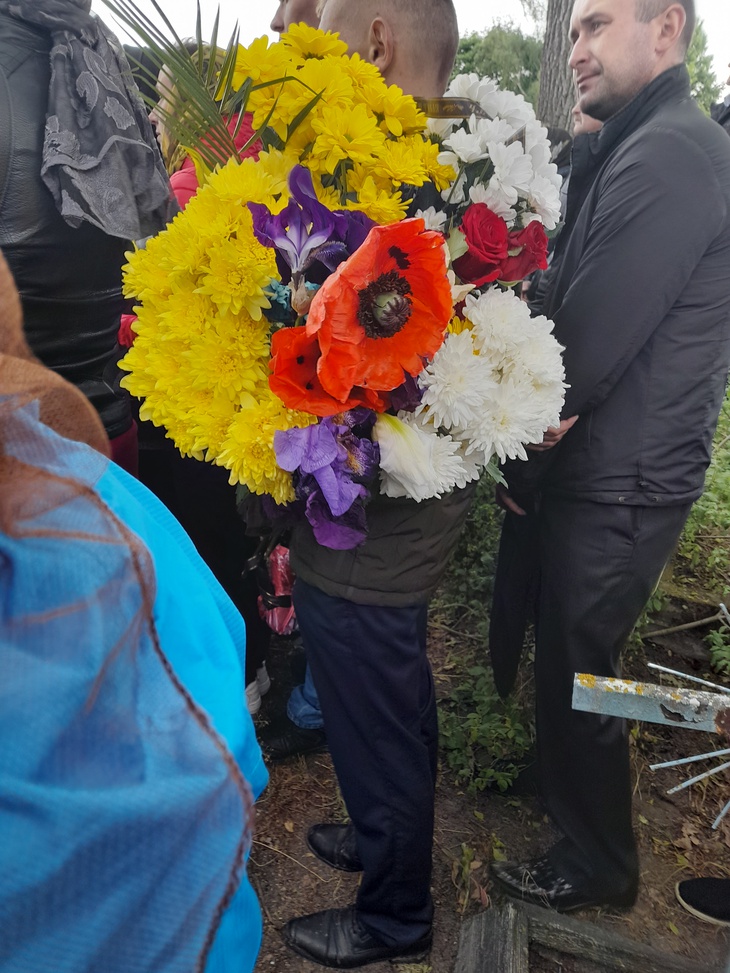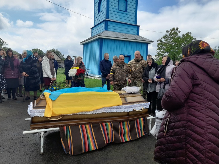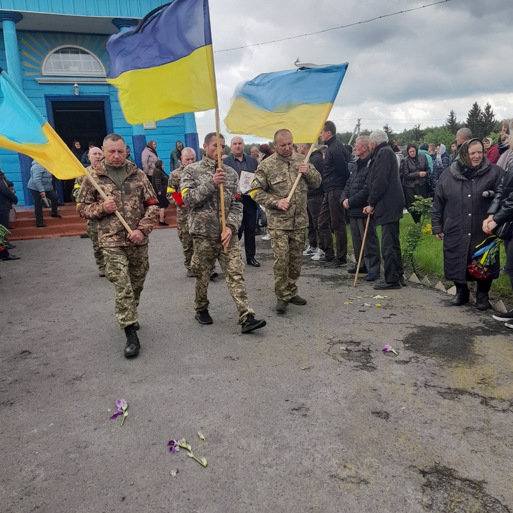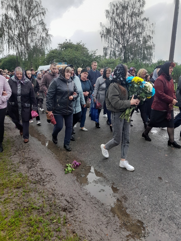 Труну несли військові. Домовину було покрито синьо-жовтим стягом, а дорогу, по якій несли полеглого воїна, встелювали живими квітами. Відспівування відбулося у місцевій церкві, в рідному селі й поховали Героя.