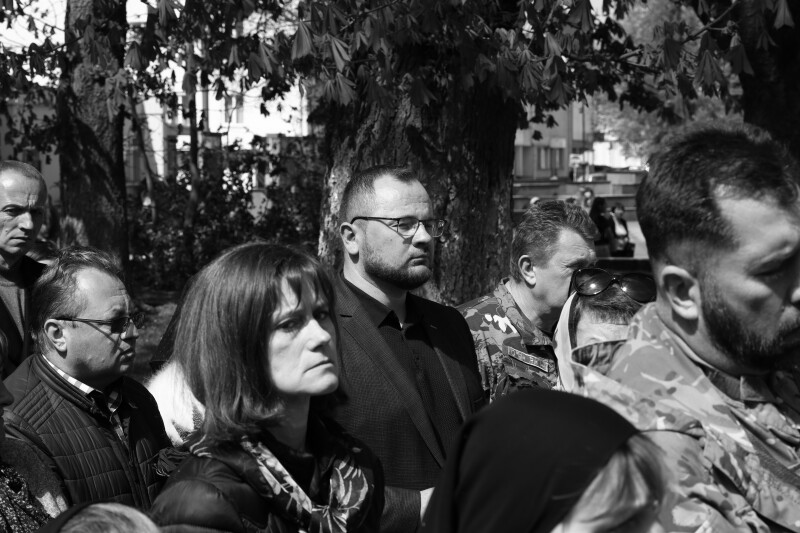 До молитви за упокій душі померлого разом із родиною, громадою та військовими побратимами долучився міський голова Ігор Поліщук, його заступник Ірина Чебелюк, секретар Луцької міської ради Юрій Безпятко, працівники виконавчих органів та окремі депутати.