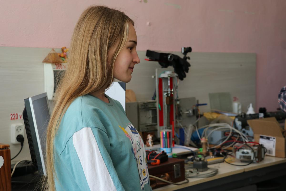 «Я захоплююся музикою та наукою і якось мені стало цікаво: чи може технологічне приладдя створювати звуки. Із своїм науковим керівником ми дійшли до висновку, що машина може видавати звук залежно від швидкості руху шпинделя верстата. Для цього її потрібно запрограмувати – так ми почали вчити машини грати музику», – розповідає юна науковиця.
