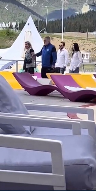 Чоловік пересувався територією курорту у супроводі двох жінок та чоловіка. Схоже, що олігарх може ховатися з близькими від війни на власному курорті в Карпатських горах.