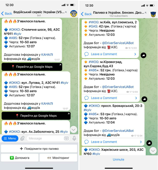 В Україні з'явився Телеграм-бот, який моніторить наявність пального на АЗС по всіх містах та сповіщає користувача про зміни. Бот одночасно збирає інформацію як від АЗС, так і від автомобілістів.