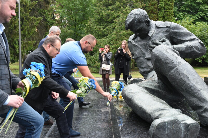 У день нападу гітлерівської Німеччини на Радянський Союз, 22 червня, представники міської і обласної влади поклали квіти із синьо-жовтими стрічками до пам’ятника «Поранений солдат» на меморіалі «Вічна слава» у Луцьку.