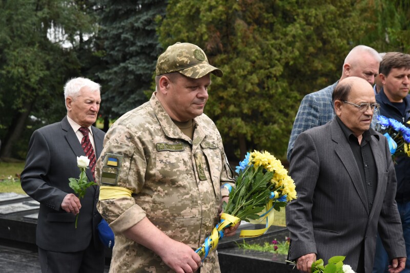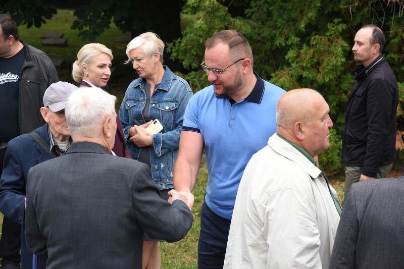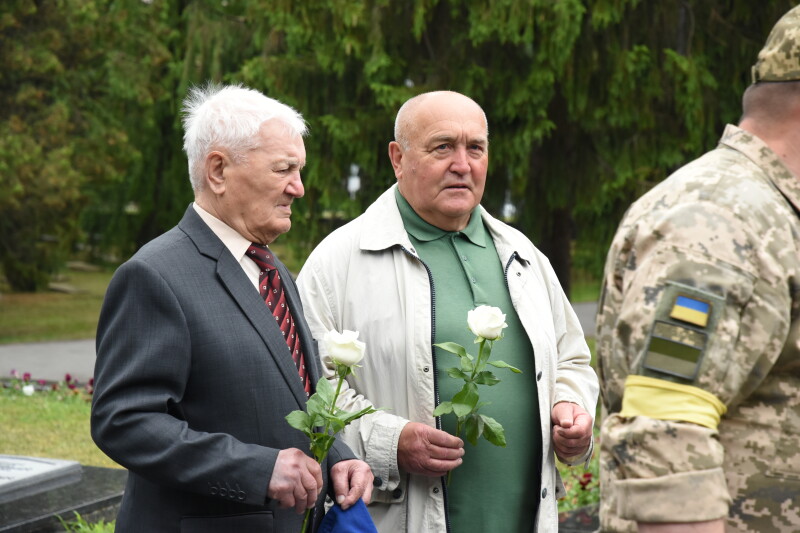 На світлинах також голова Луцької міської організації ветеранів України Валерій Севрюков, чоловік у камуфляжі, а також двоє чоловіків старшого віку, ймовірно, ветерани Збройних сил СРСР.