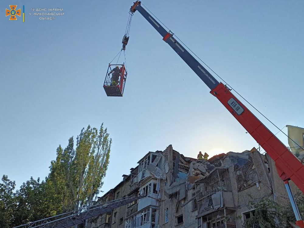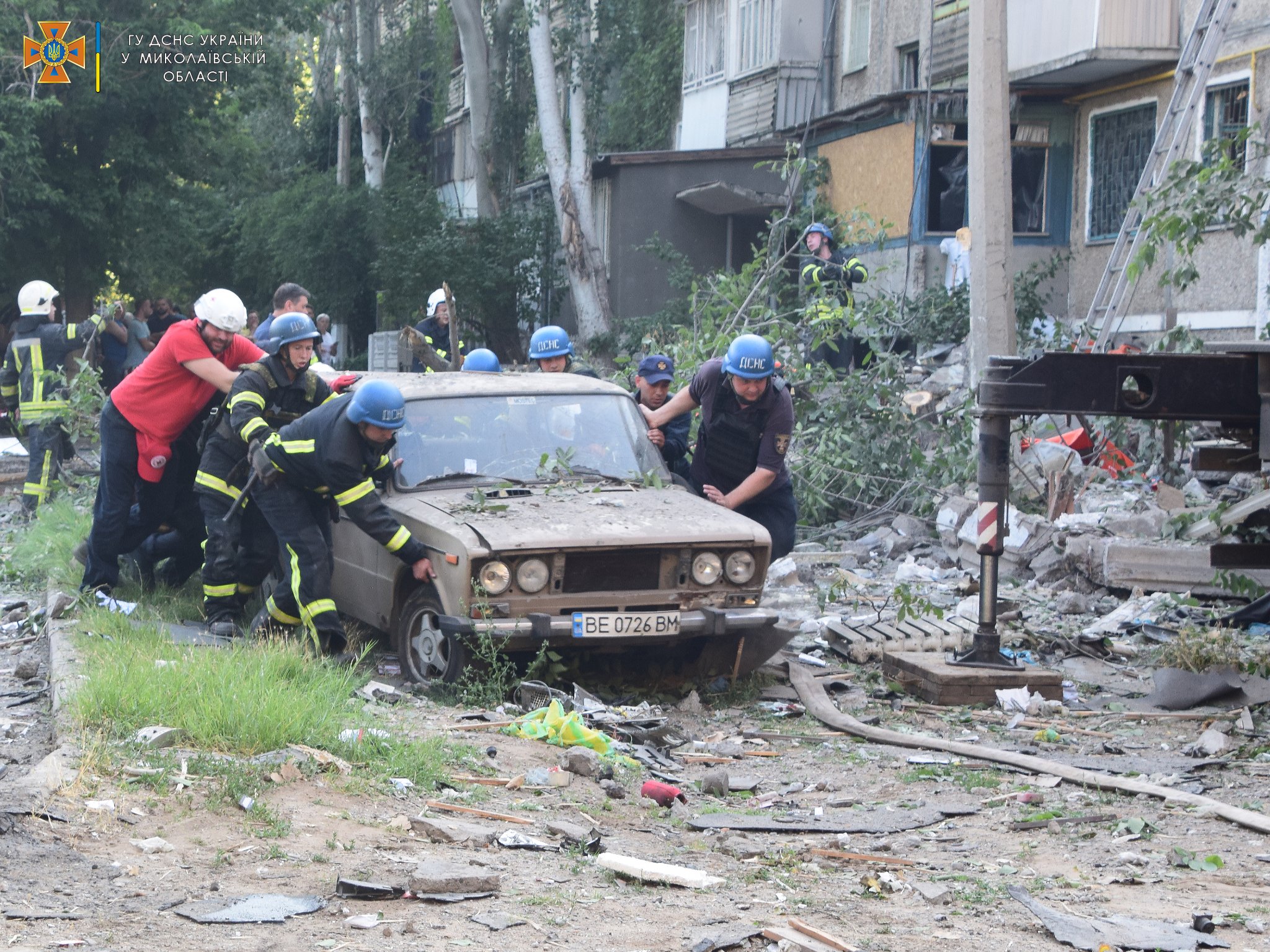 Наразі на місці працюють чергові караули державних пожежно-рятувальних частин міста, чергові зміни оперативно-координаційного центру та аварійно-рятувальної частини аварійно-рятувального загону спеціального призначення Головного управління ДСНС України у Миколаївській області. Також, до ліквідації наслідків залучено 10 взвод Державного воєнізованого гірничо-рятувального загону ДСНС України, бригади швидкої медичної допомоги, екіпажі патрульної поліції, аварійні бригади АТ «Миколаївобленерго», АТ «Миколаївгаз». Додатково на місці постраждалим мешканцям допомогу надають волонтери Товариства Червоний Хрест України Миколаївської області.