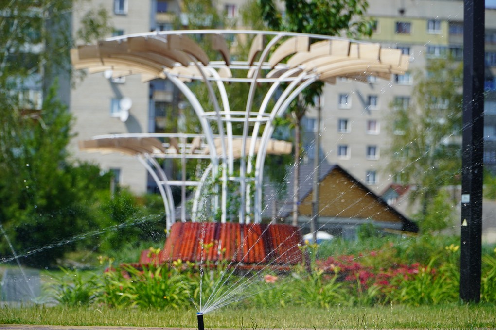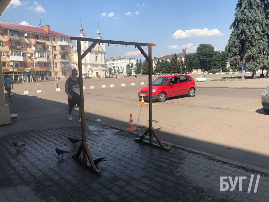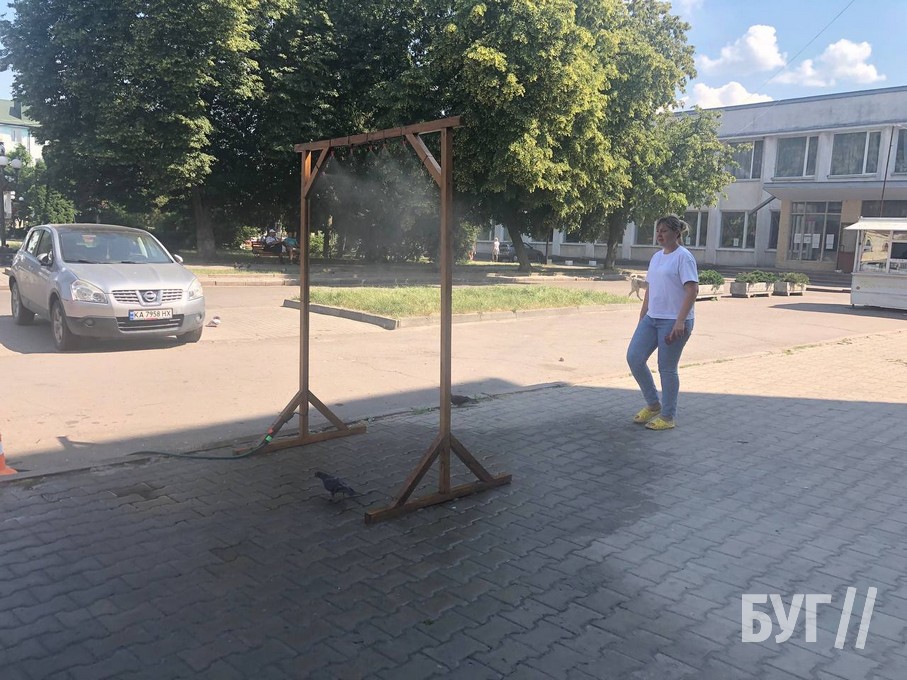 Через сильну спеку у Володимирі поставили дерев’яні рамки-розпилювачі води, щоб у спекотні дні містяни могли освіжитися.
