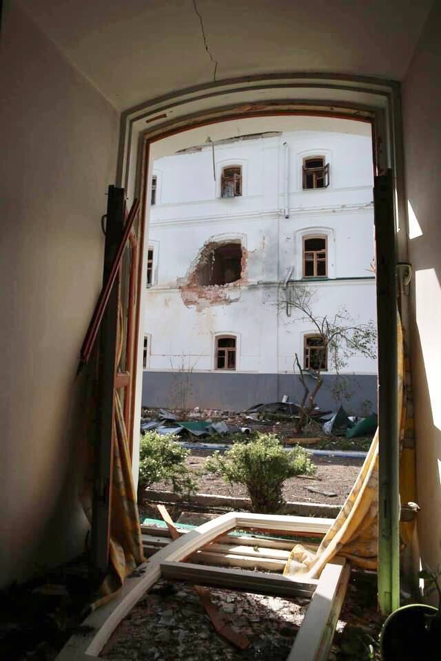 Також отримали тяжкі поранення 5 духівників, один із яикх помер у лікарні. Корпуси, що є пам’ятками архітектури, зазнали серйозних руйнувань із частковим загоранням.