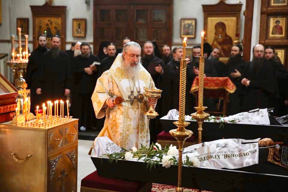 3 червня, під час безперервних вибухів від влучень по будівлях та території Лаври, відбулася служба чину поховання собором братії.
