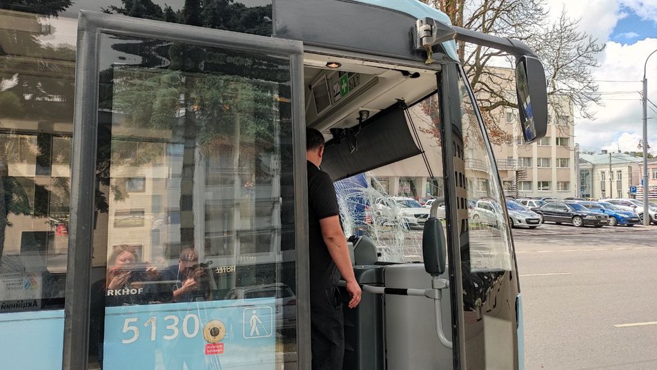 В автобуса розбитий перед і потріскане лобове скло. «Їхав, не знаю, що сталося, наїхав на знак, автобуса стукнув 25-ку», – каже водій.