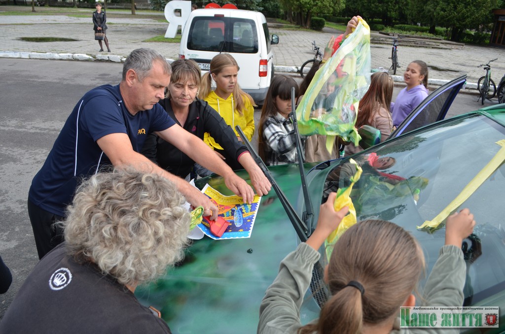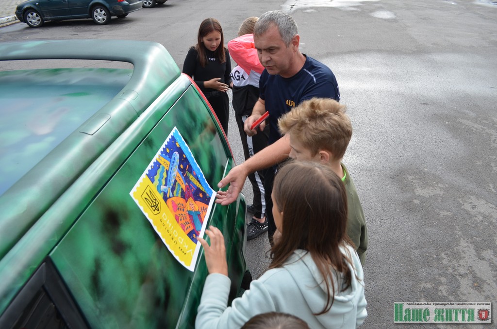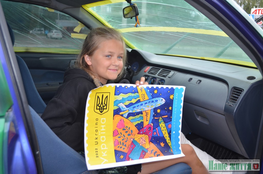 А фінальною крапкою цього перформансу стало «маркування» автомобіля «фірмовим» знаком. Ним слугував малюнок Софійки Кравчук, який ліг в основу популярної поштової марки «Українська мрія». Сама авторка малюнку спостерігала за цим дійством зсередини автівки, оскільки нещодавно зламала ногу.