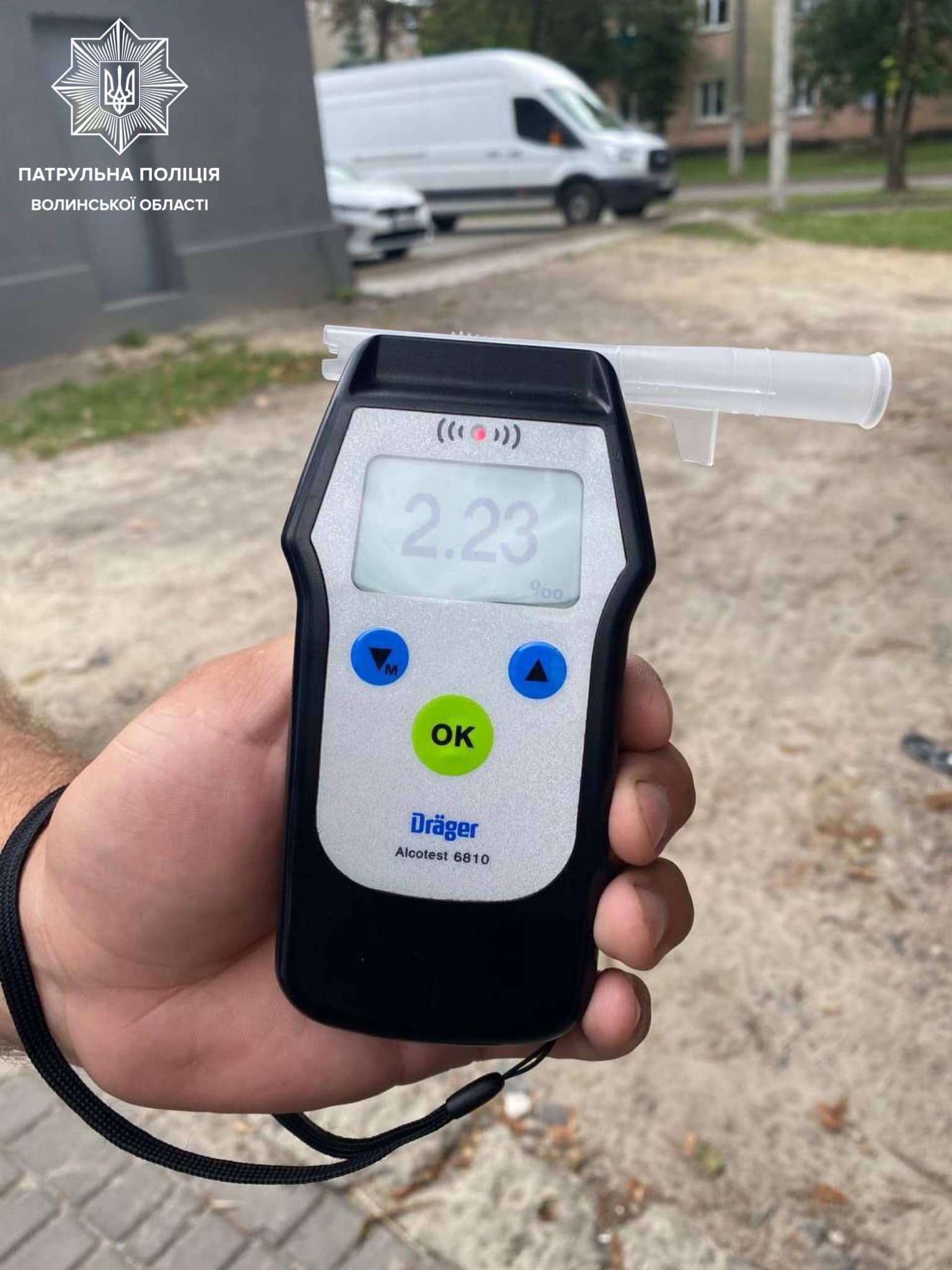 Також під час спілкування поліцейські виявили ознаки алкогольного сп’яніння та запропонували водієві пройти тест на огляд стану алкогольного сп'яніння на місці зупинки за допомогою приладу Drager. Результат огляду позитивний — 2, 23 проміле, що перевищує допустиму норму у 11 разів.