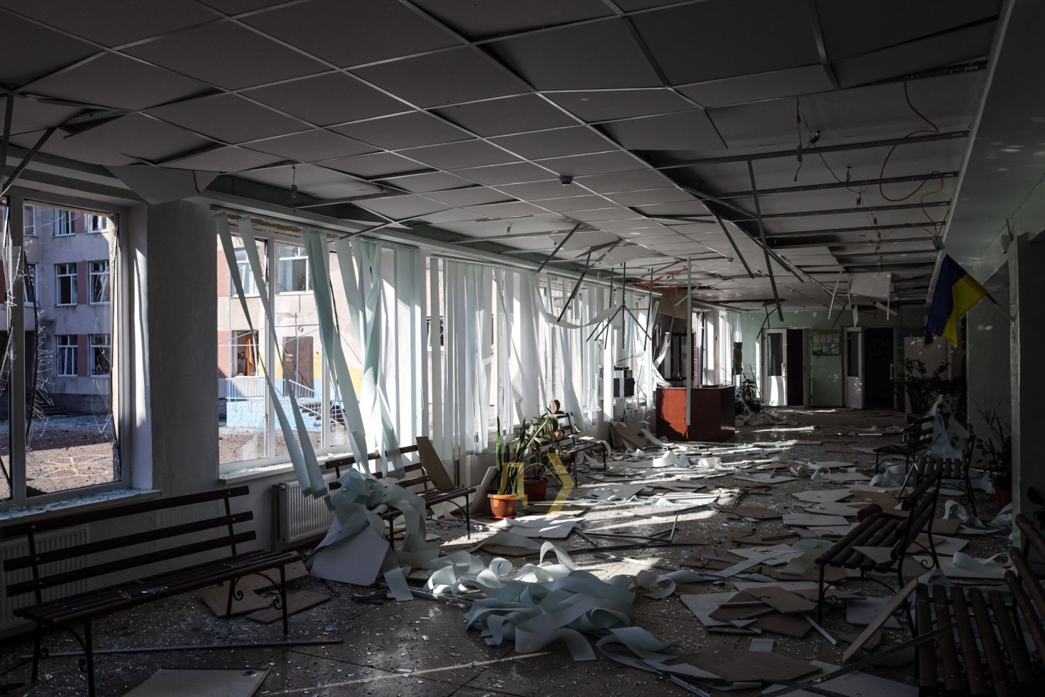 Вибухова хвиля майже повністю зруйнувала будівлю місцевої школи: у будівлі вибито все скло, жоден кабінет не вцілів.