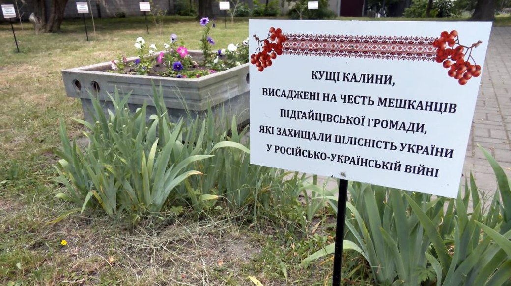У селі Підгайці Луцького району облаштували сквер пам’яті жителям громади, які загинули за роки війни з Росією. Поблизу Меморіалу вічної слави рідні загиблих висадили кущі калини та розмістили іменні таблички полеглих воїнів.