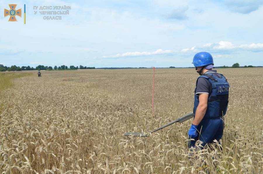 Сапери ДСНС на Чернігівщині розчищають поля від небезпечних предметів, перш ніж фермери зможуть зібрати урожай. Участь у розмінуванні територій беруть і сапери ДСНС Волинської області.