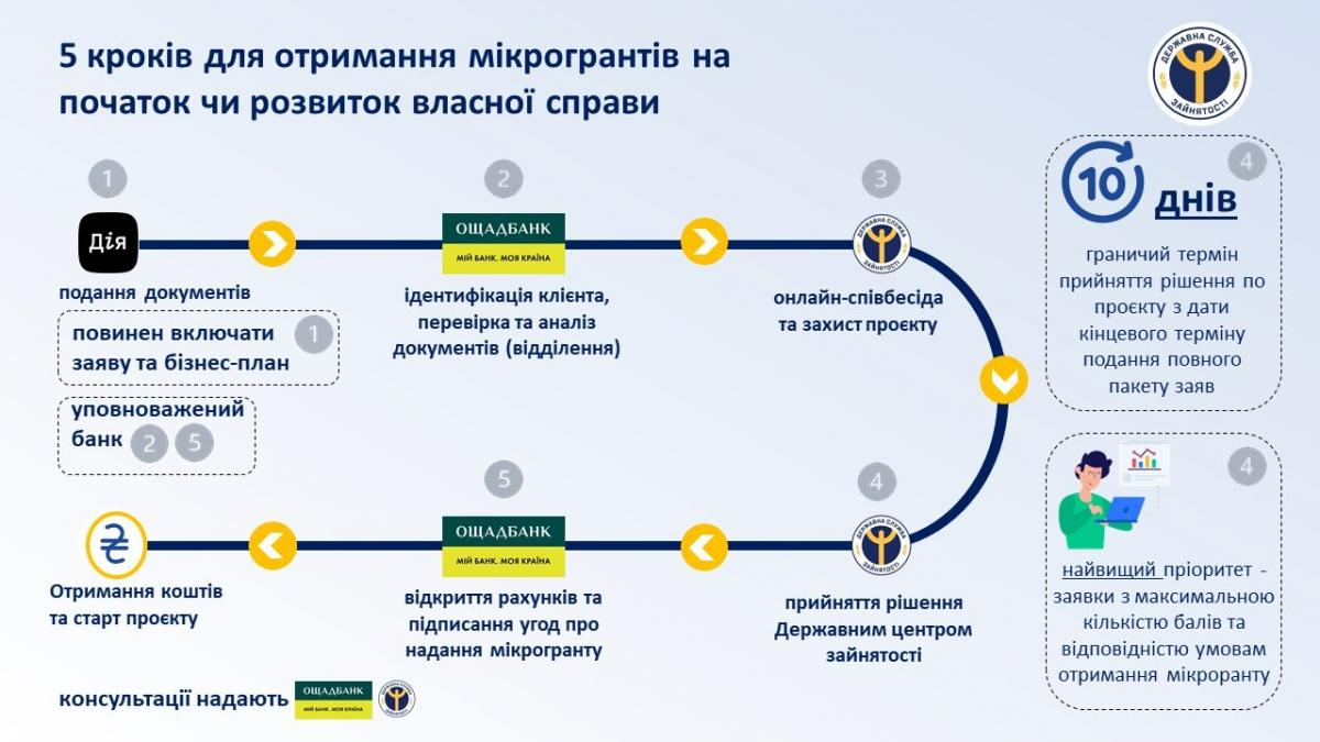 Консультацію щодо умов програми та оформлення заявки можна отримати у відділенні Ощадбанк, центрі зайнятості.