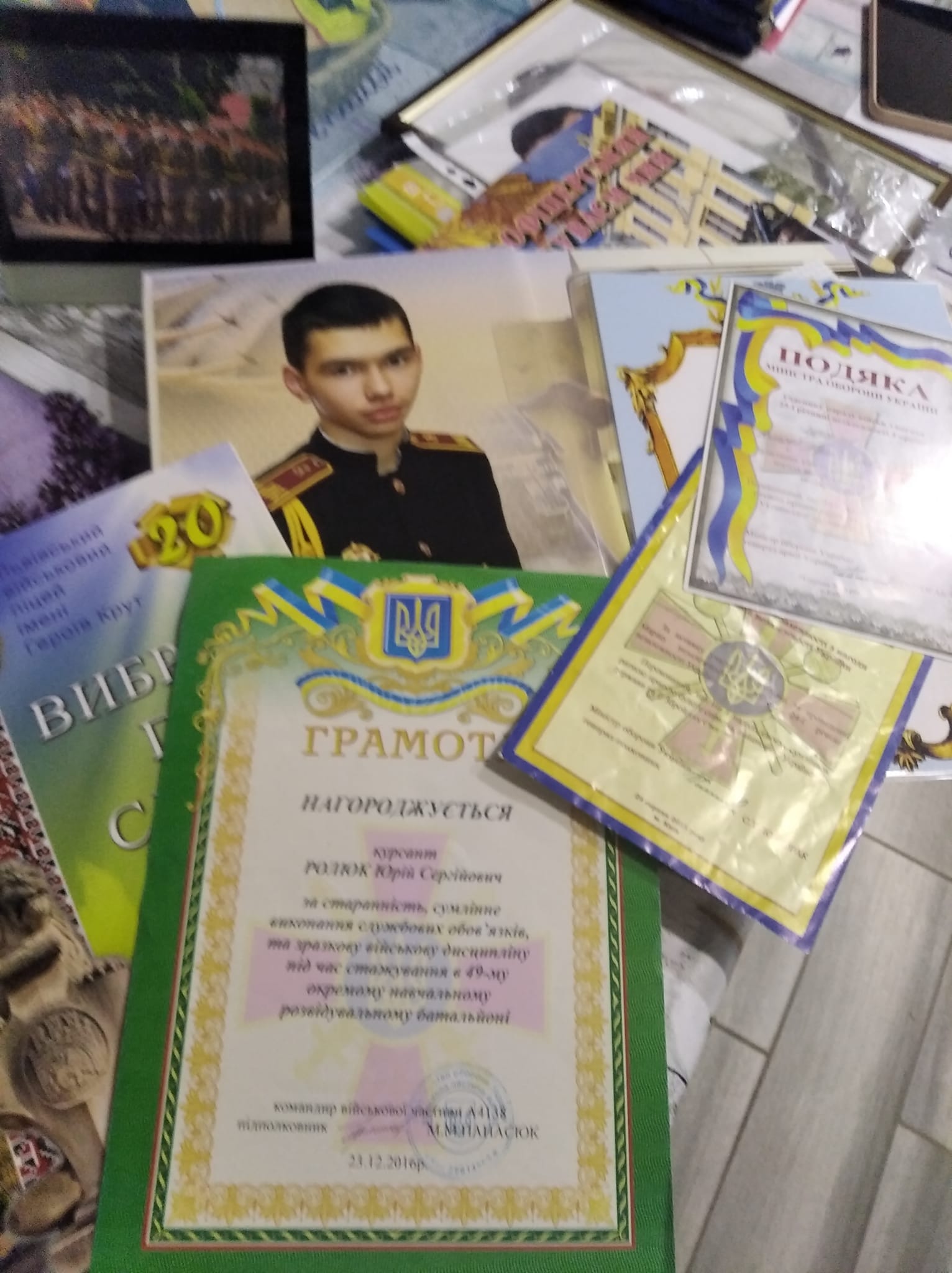 - Юрі подобалася військова справа. Ще навчаючись у ліцеї, намагався залучити до неї інших. Для цього ходив у школи і розповідав про те, наскільки почесною є професія військового. По закінченні навчального військового закладу попередив, що коли не вступить до академії, піде в армію, а потім знову подаватиме документи, - розповідає мама героя Оксана Ролюк. - Спочатку я його підтримувала, але коли почалася війна на сході, засумнівалася, чи правильно вчиняю? Та знаючи характер сина, зрозуміла, що рішення вже прийнято. «Хто як не я», - казав він, і жартома додавав, що служба в ЗСУ має чимало переваг, зокрема, там рано йдуть на пенсію. «У мене буде вдосталь часу на все те, на що не вистачає його зараз. Наприклад, поставлю пасіку, облаштую кошару та заведу отару баранів і буду господарювати», - сміючись говорив він.