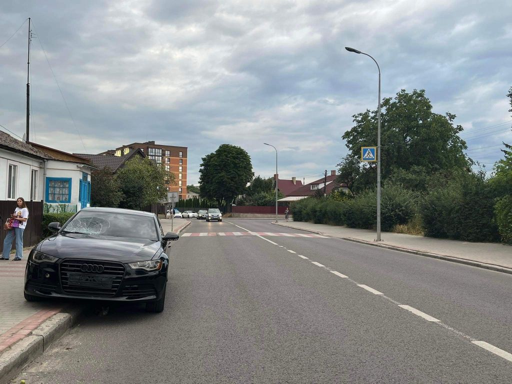 Стан потерпілих невідомий. Водійка не постраждала, проте пошкодилось переднє скло автівки. На місці працювала поліція та швидка. Деталі згодом.