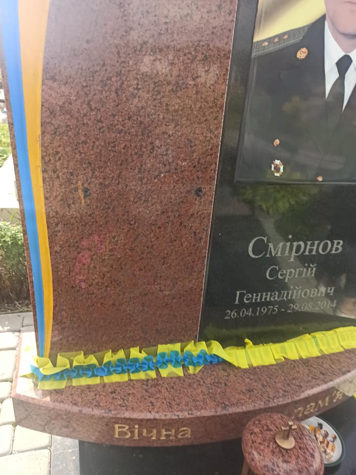 У Володимирі з надгробної плити встановленої на могилі Героя Сергія Смірнова вандали викрали тризуб.