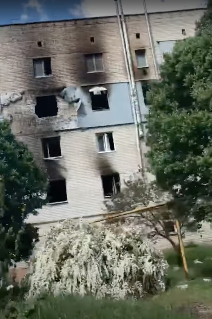 «Там жити неможливо, там все зруйноване. Навіть стовпи електричні попадали, проводів немає. Я вже не кажу про інтернет. Води немає. Газ теж розбили. І як там жити? Люди, які там залишилися, сидять… з цегли виклали примітивну пічечку, сковороду ставлять, щось там розігрівають. Раніше волонтери доїжджали, а зараз і волонтери не попадають. Знайомі, рідні роз’їхалися по всій Україні, в нас на вулиці залишилося три чоловіки. У нас в Старому Салтові дуже багато сєпарів було. Вони родом з росії. Коли будувалася база відпочинку завода Малишева, то робочих набирали з Курської і Воронезької областей. І вони залишилися тут, отримали квартири. Усі п’ятиповерхівки – там 70% москалів жило. Ото вони потурали ворогу. «Нам русские ничего не сделали. У нас все нормально». Рускі їм віддячили за таку відданість. Розбомбили всі п’ятиповерхівки. Там ніхто не живе зараз. В нас було п’ять п’ятиповерхівок, всі розметало, вікна повибивані, під’їзди обгорівші, страх господній».