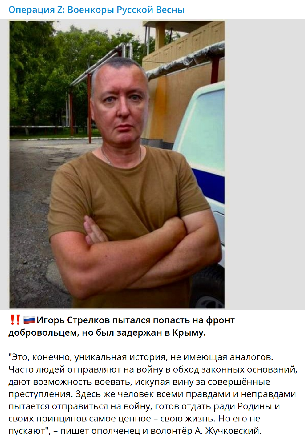 Російські окупанти затримали в окупованому Криму свого ж терориста Ігор Гіркін (Стрєлков), який брав участь в окупації Криму та захопленні Слов'янська у 2014 році.
