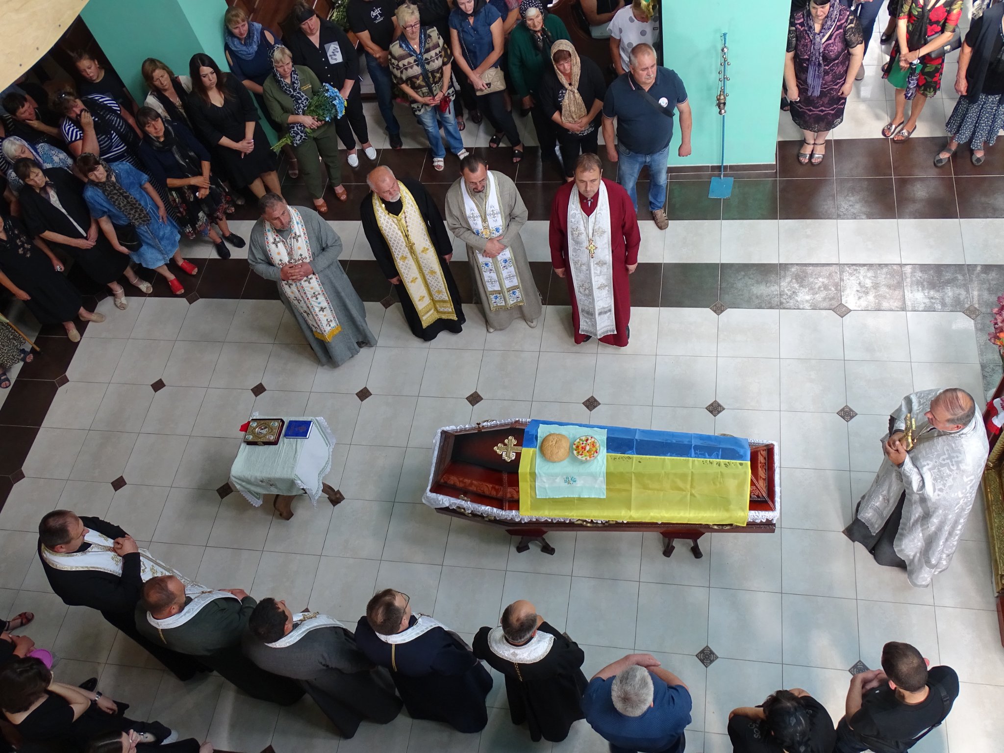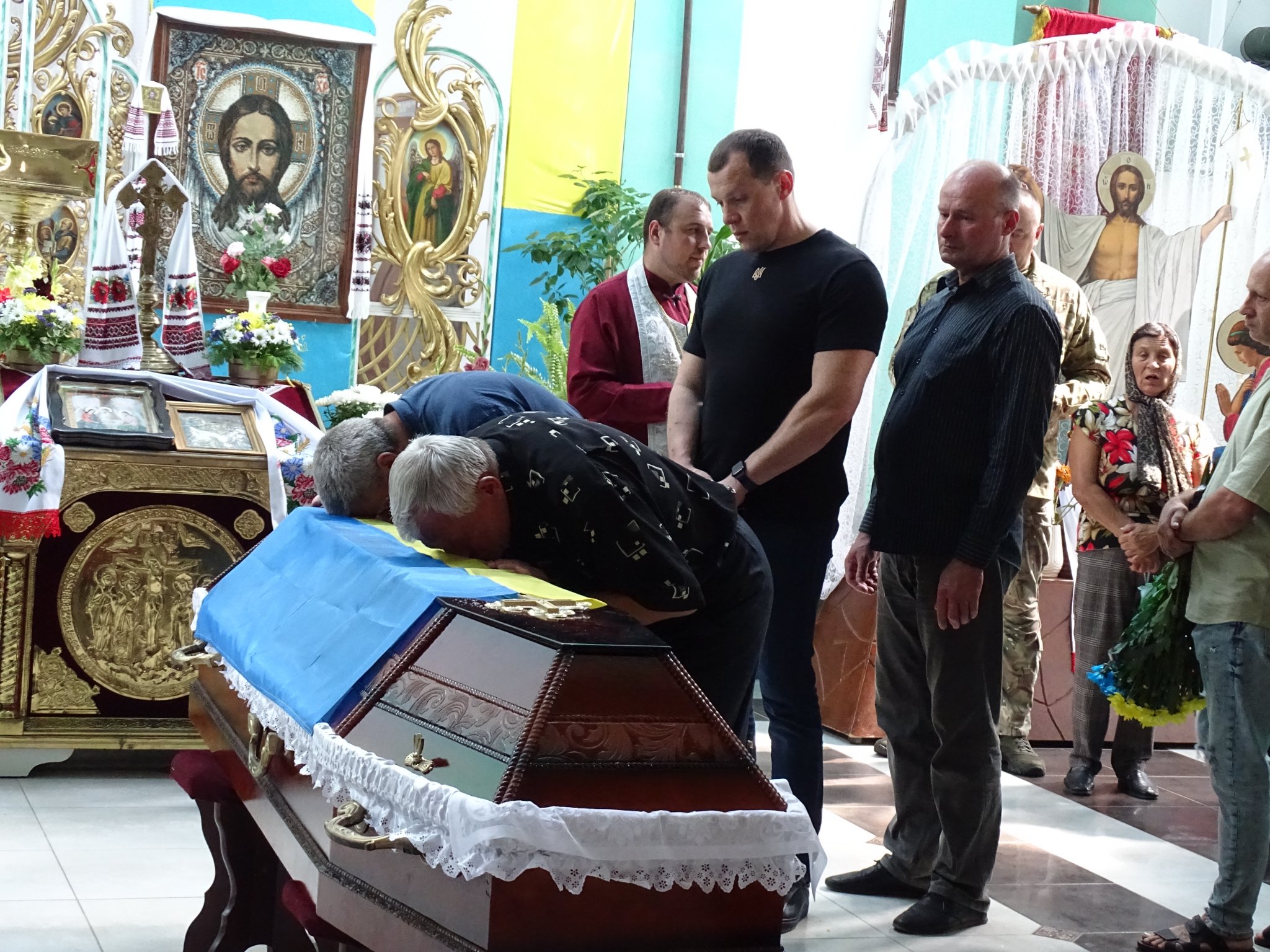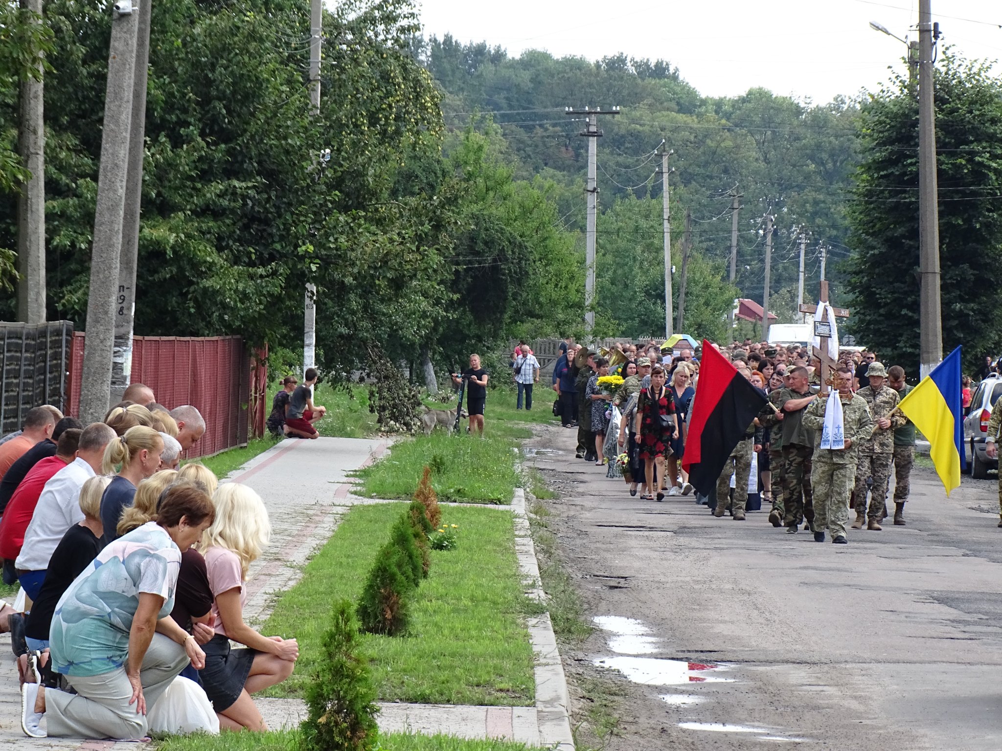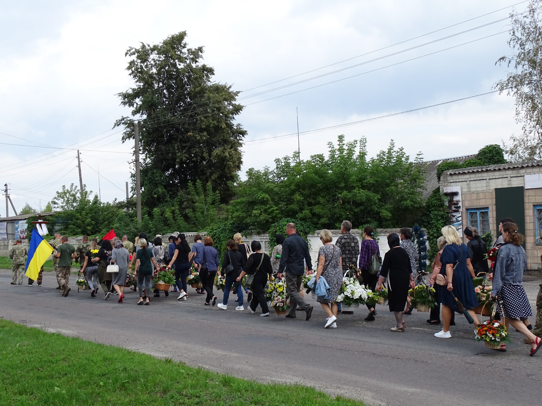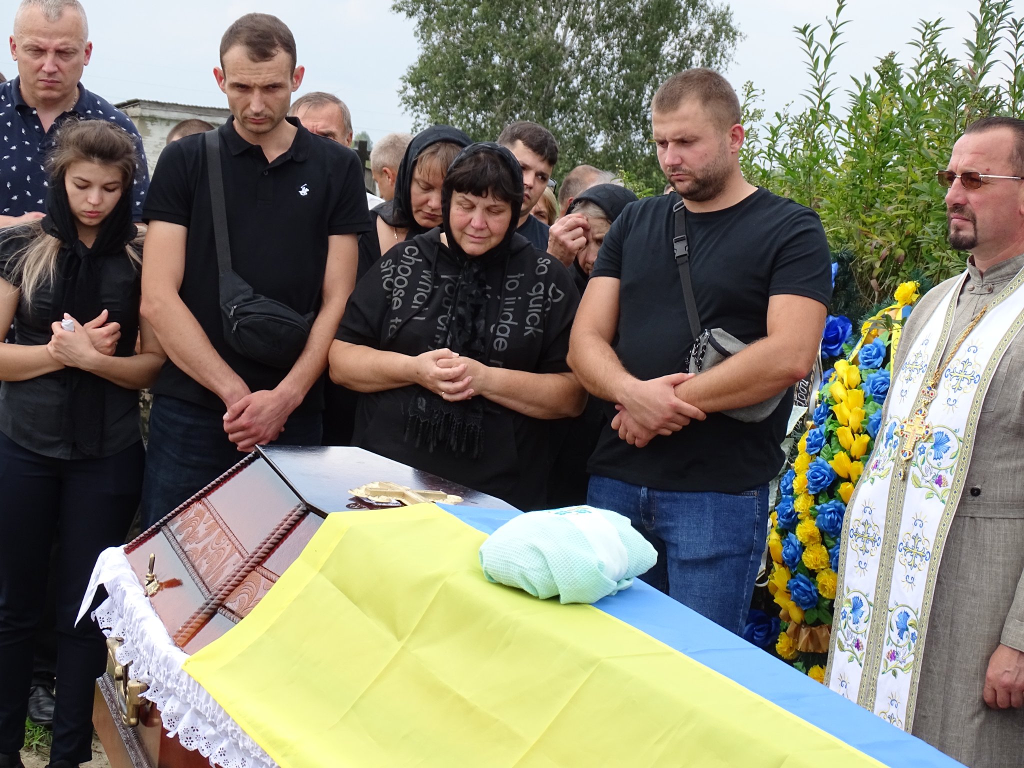 Від рідного дому до місця земного спочинку вулицями рідного селища військові на плечах несли загиблого воїна під звуки духового оркестру. За душу Олександра підносилися молитви. Чин поховання у Свято-Троїцькому храмі звершив митрофорний протоієрей о. Миколай спільно з духовенством деканату.