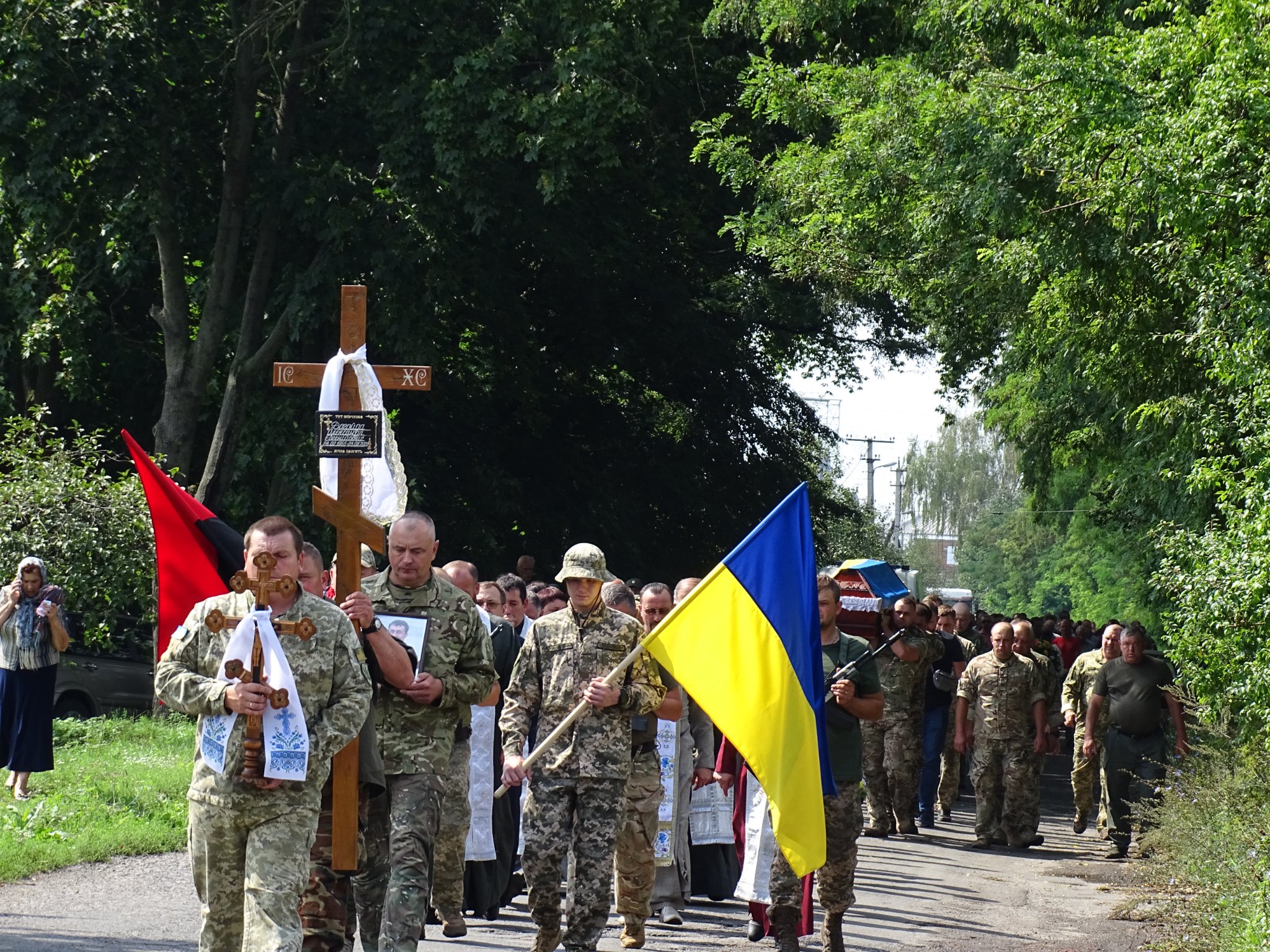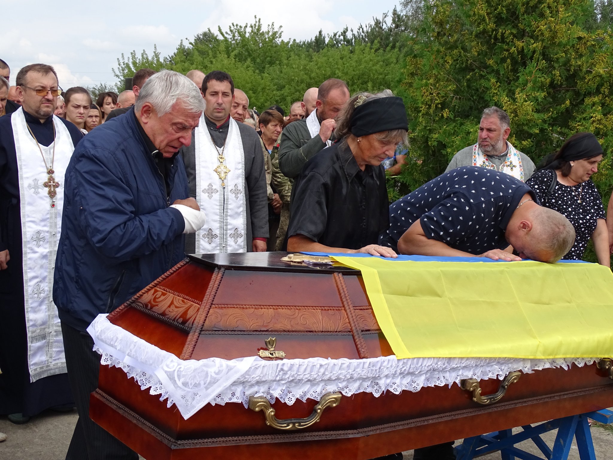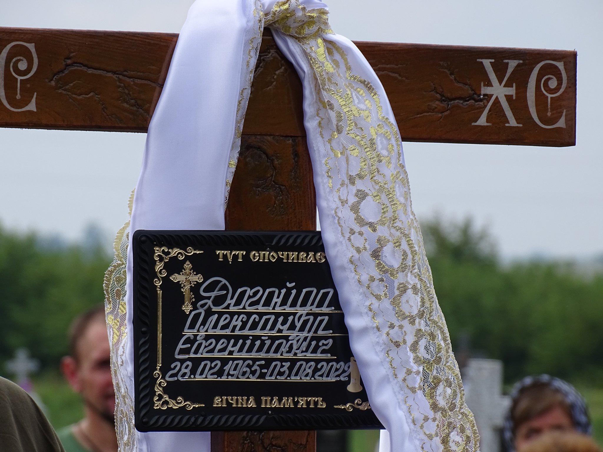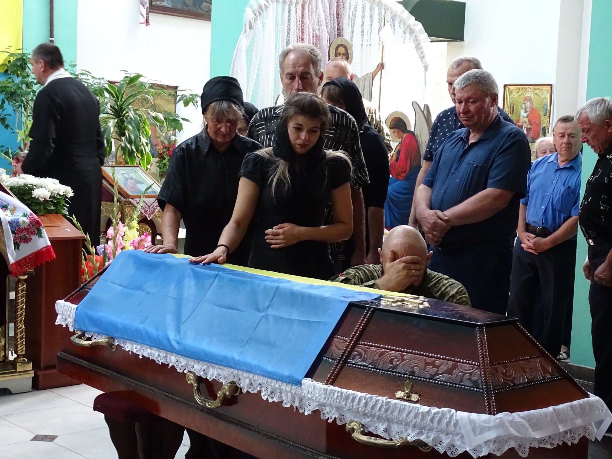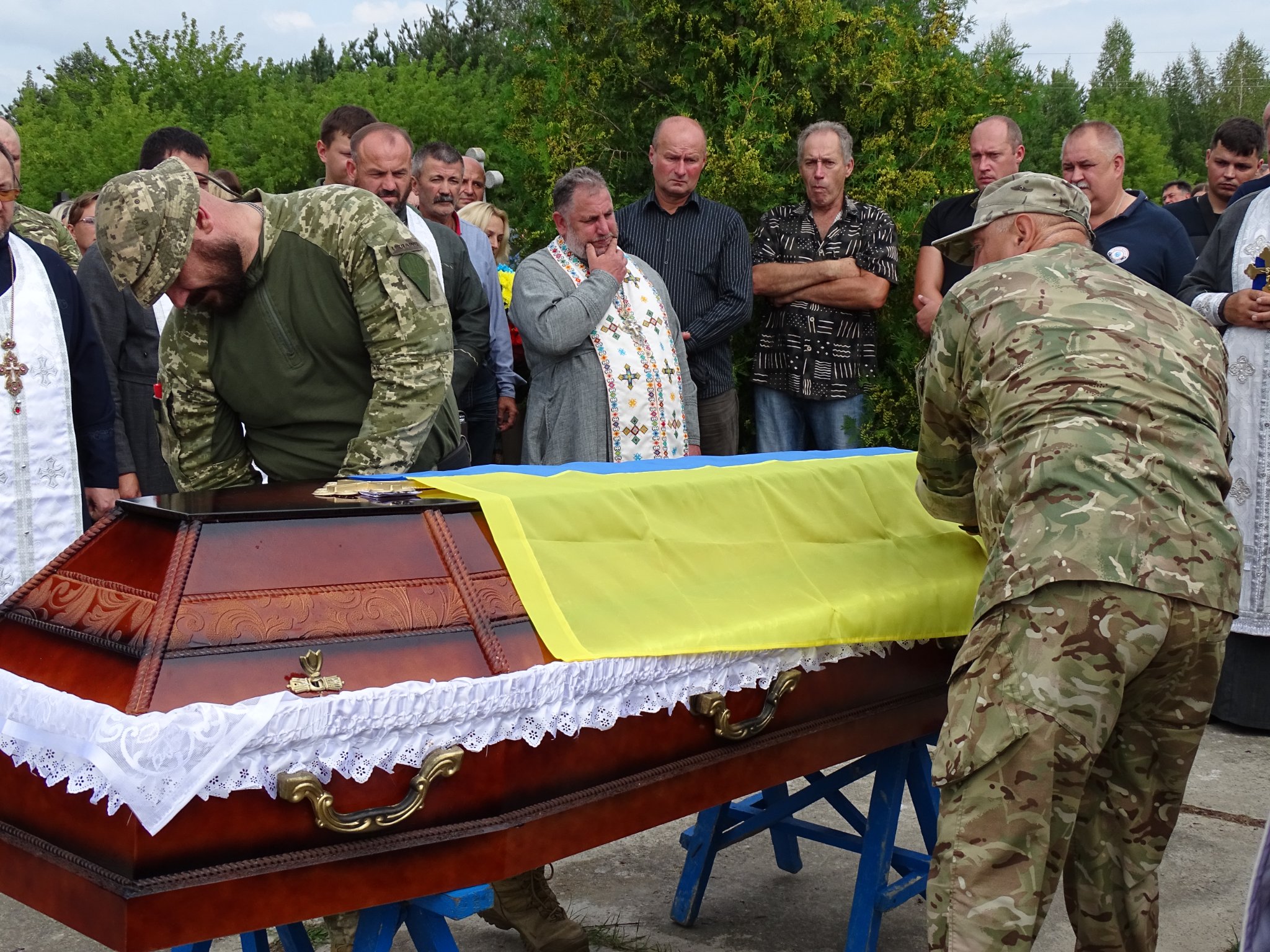 Від рідного дому до місця земного спочинку вулицями рідного селища військові на плечах несли загиблого воїна під звуки духового оркестру. За душу Олександра підносилися молитви. Чин поховання у Свято-Троїцькому храмі звершив митрофорний протоієрей о. Миколай спільно з духовенством деканату.