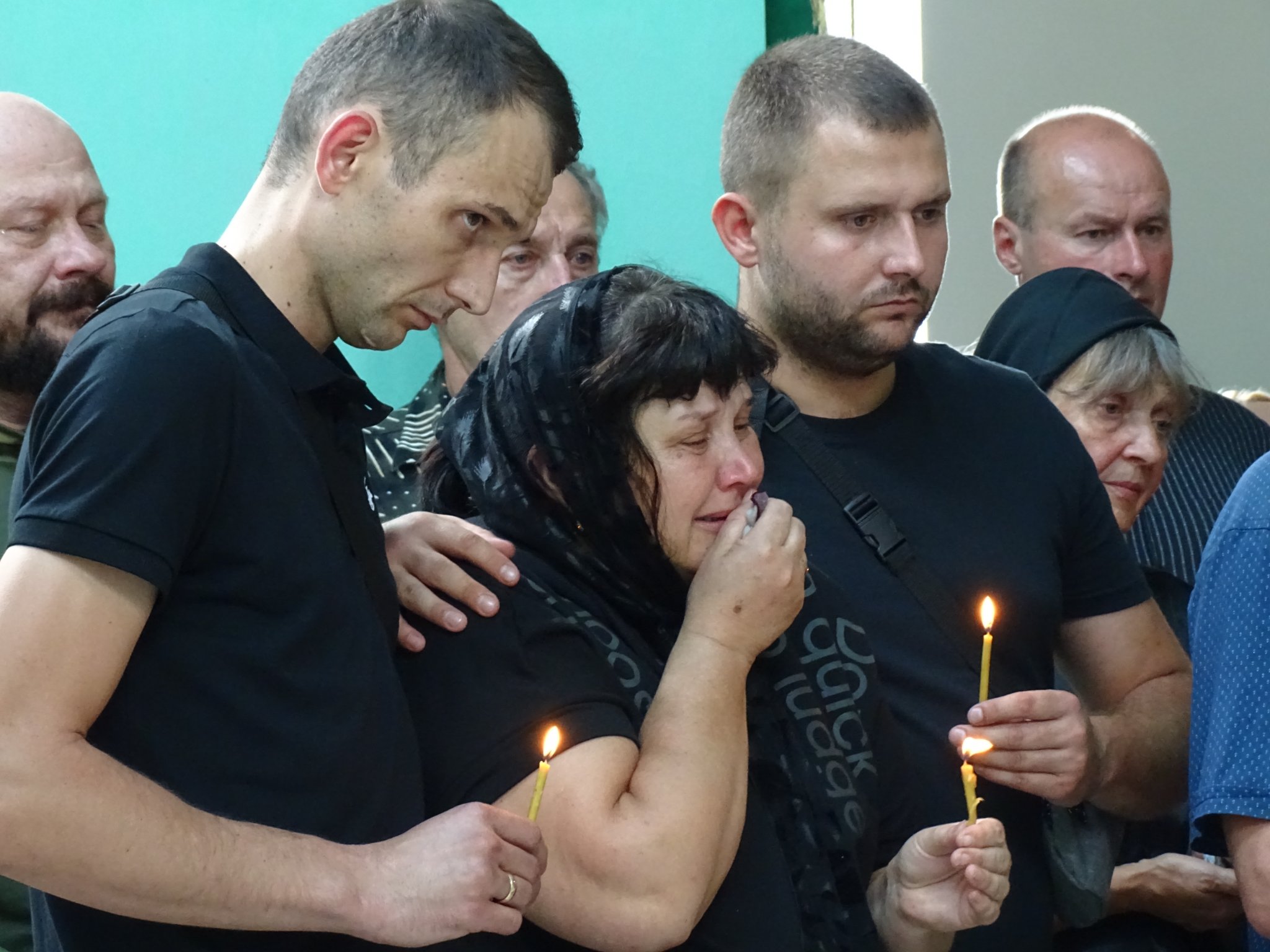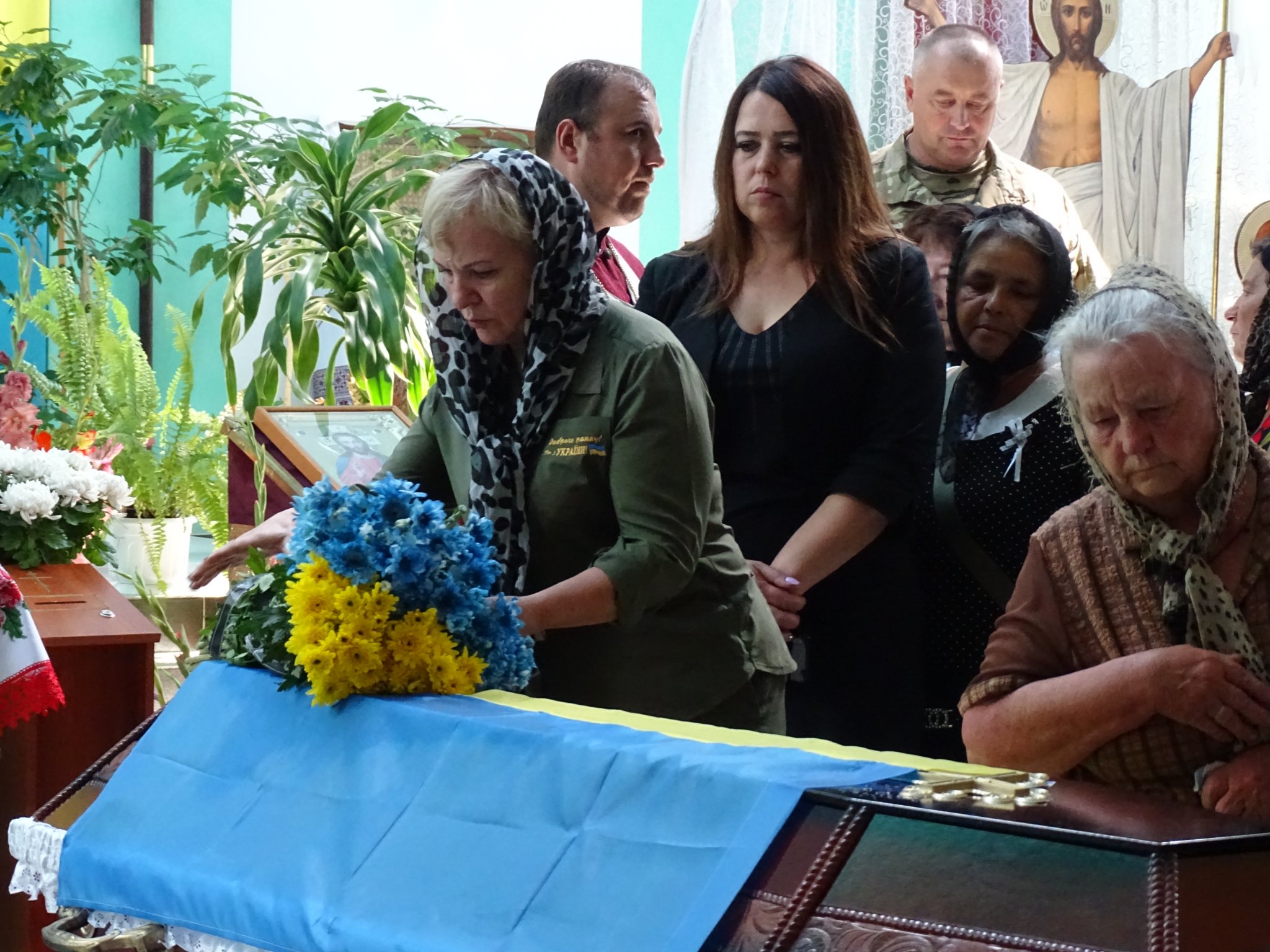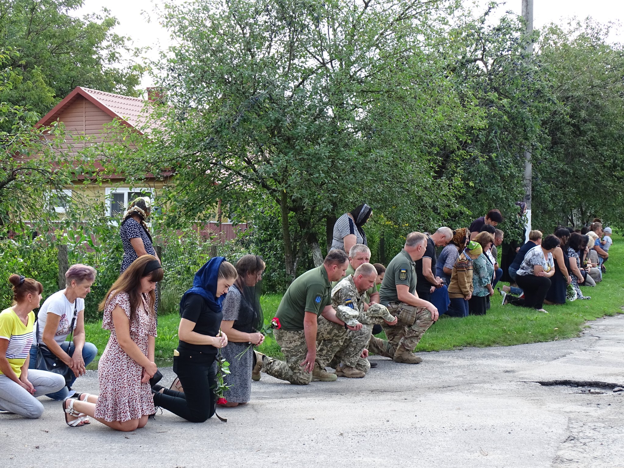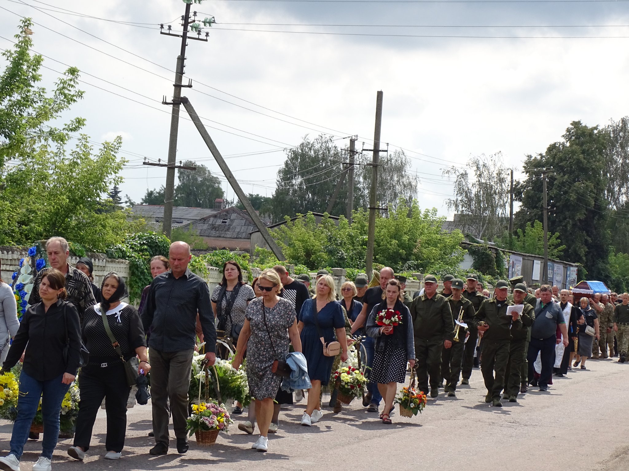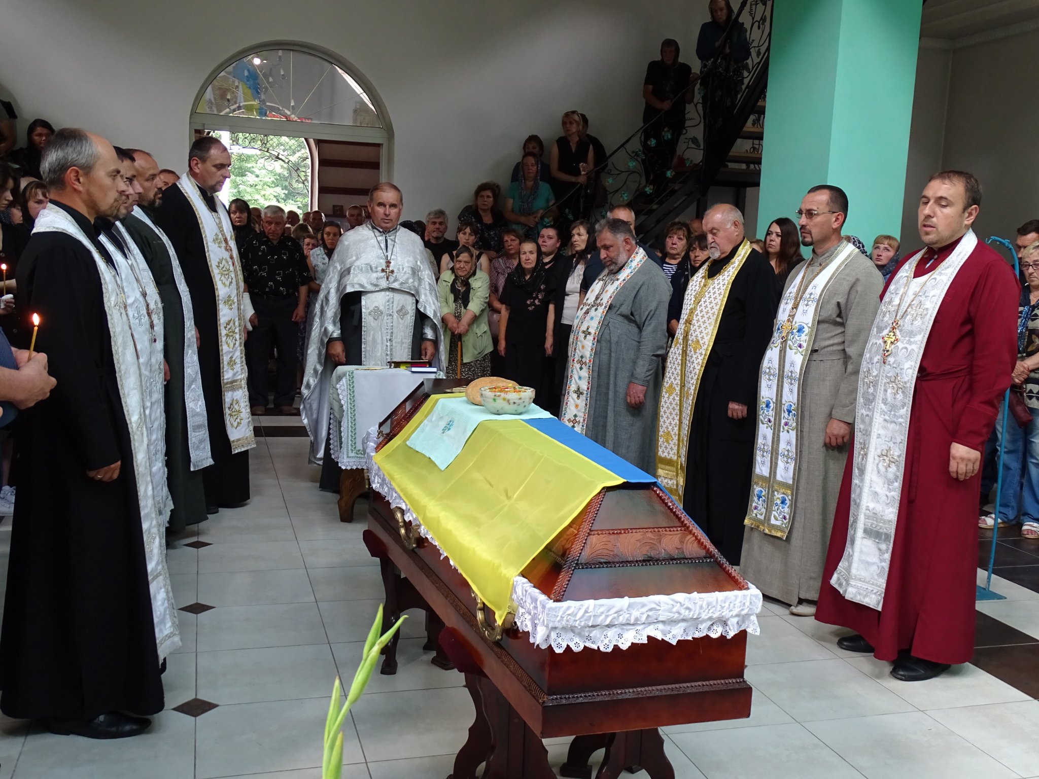 Від рідного дому до місця земного спочинку вулицями рідного селища військові на плечах несли загиблого воїна під звуки духового оркестру. За душу Олександра підносилися молитви. Чин поховання у Свято-Троїцькому храмі звершив митрофорний протоієрей о. Миколай спільно з духовенством деканату.