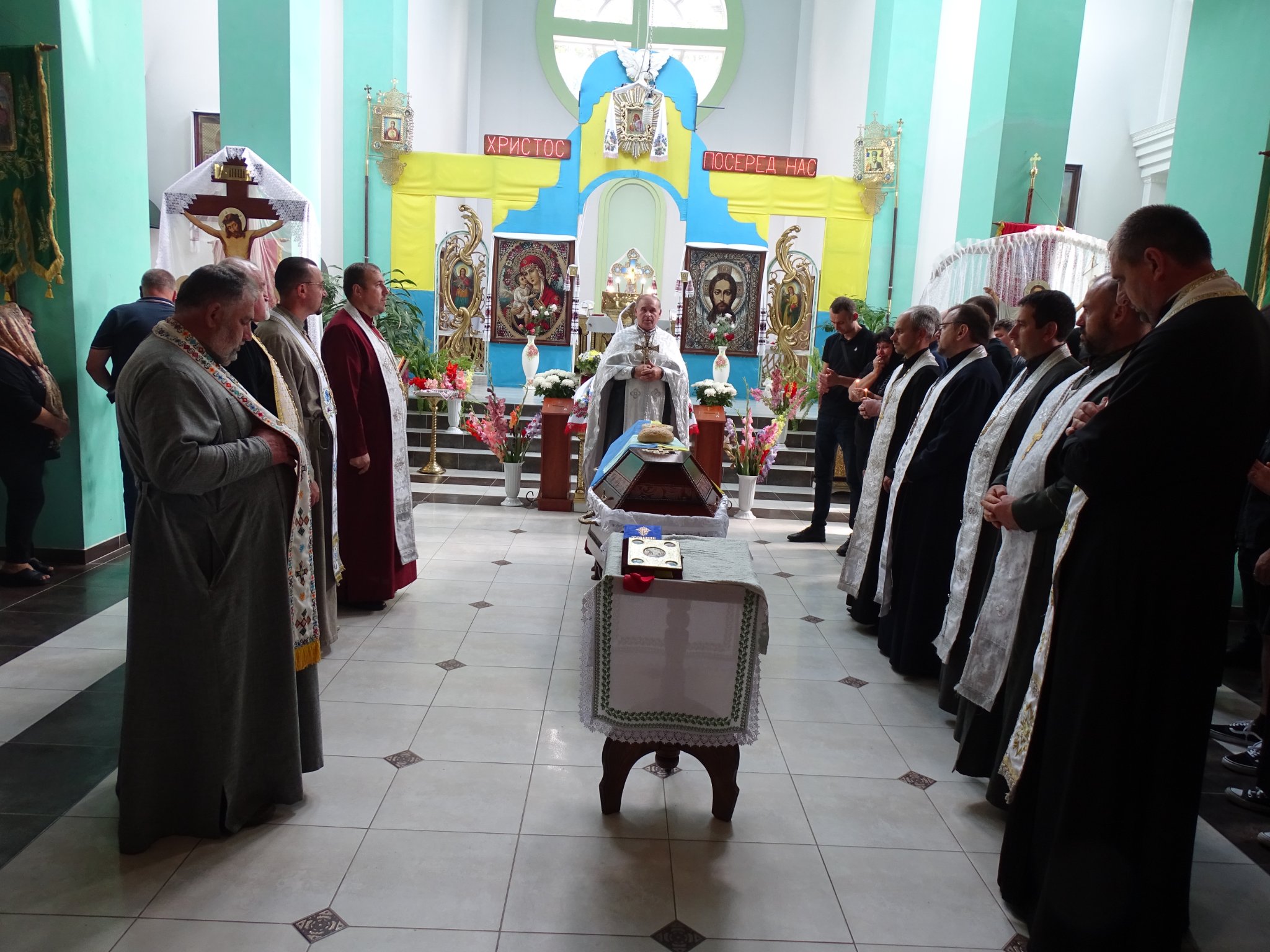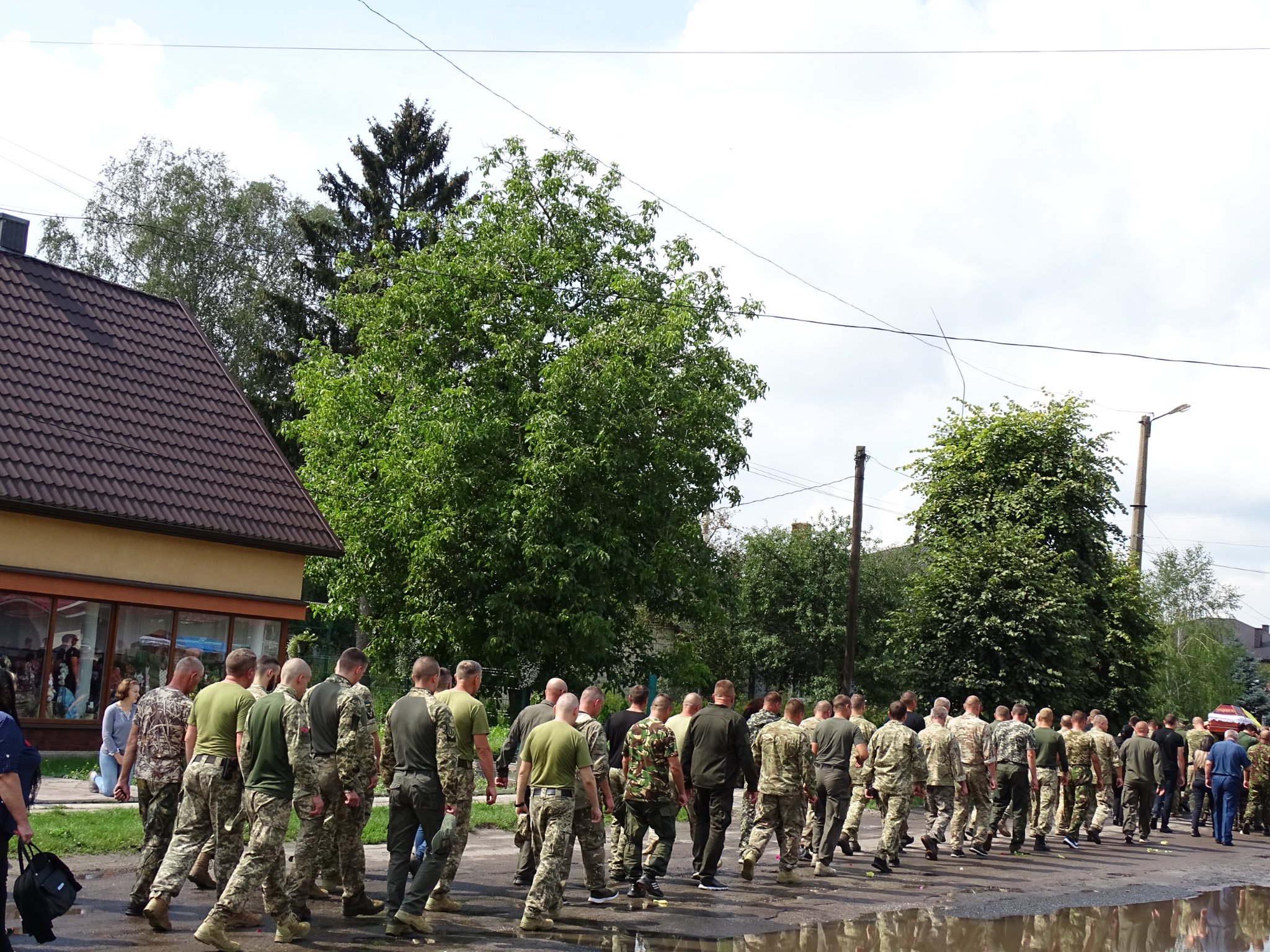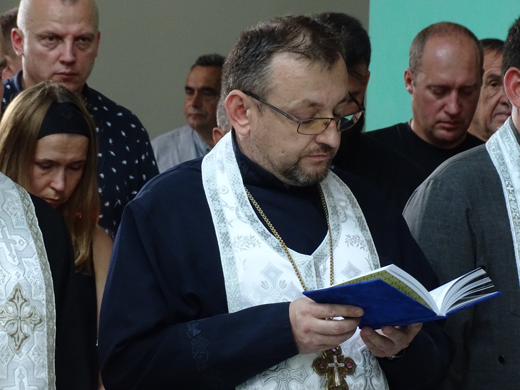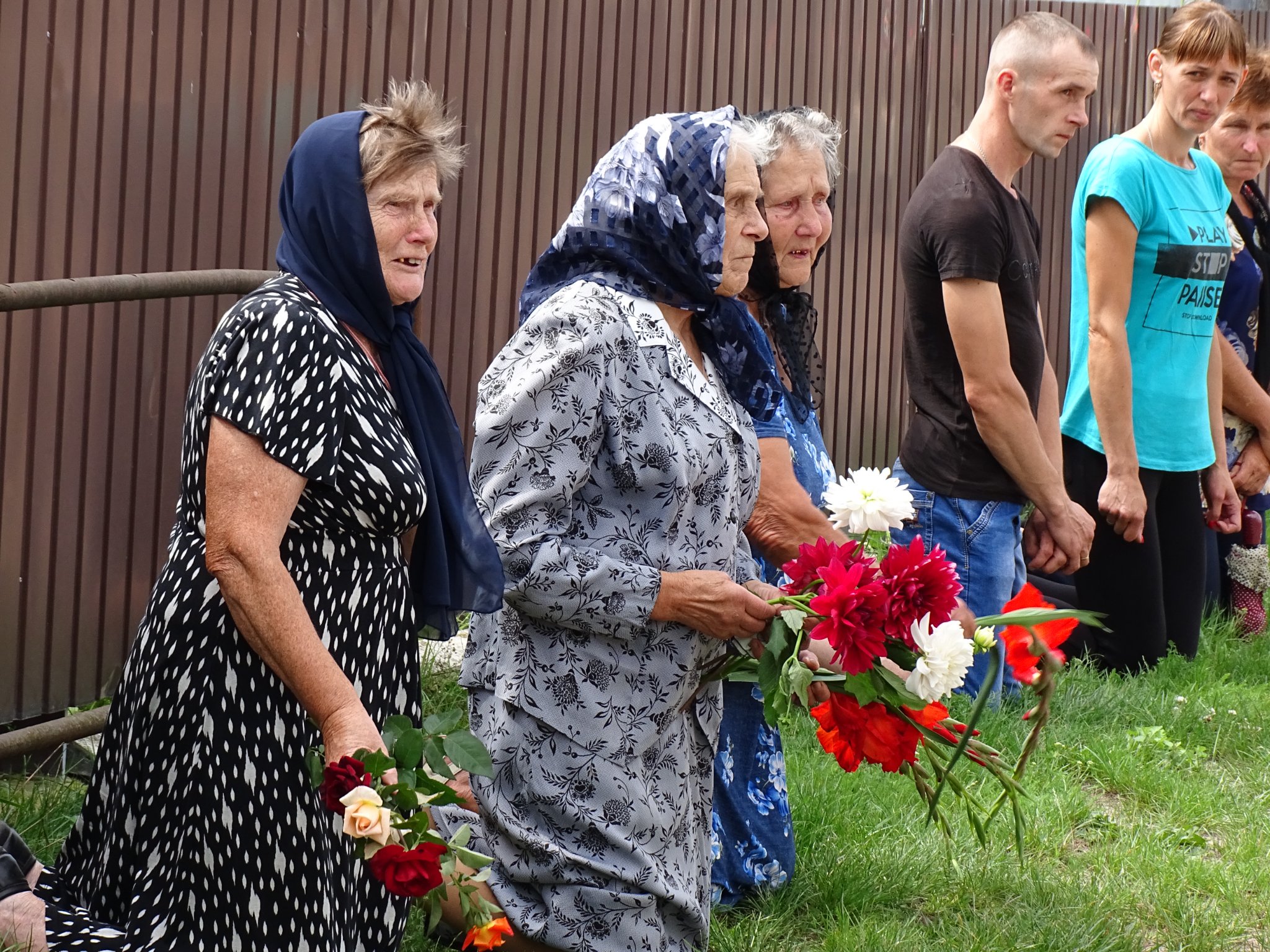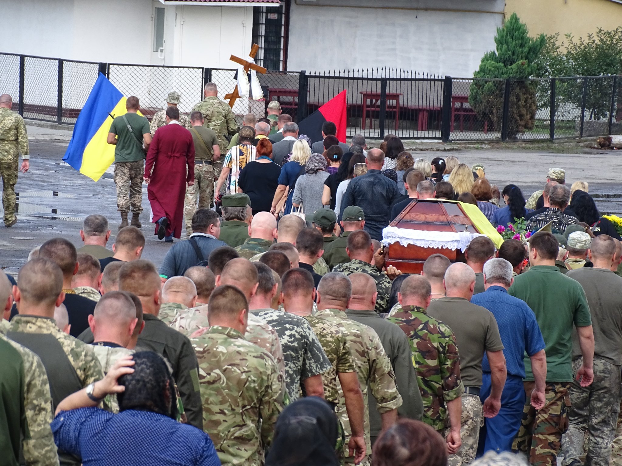 Від рідного дому до місця земного спочинку вулицями рідного селища військові на плечах несли загиблого воїна під звуки духового оркестру. За душу Олександра підносилися молитви. Чин поховання у Свято-Троїцькому храмі звершив митрофорний протоієрей о. Миколай спільно з духовенством деканату.