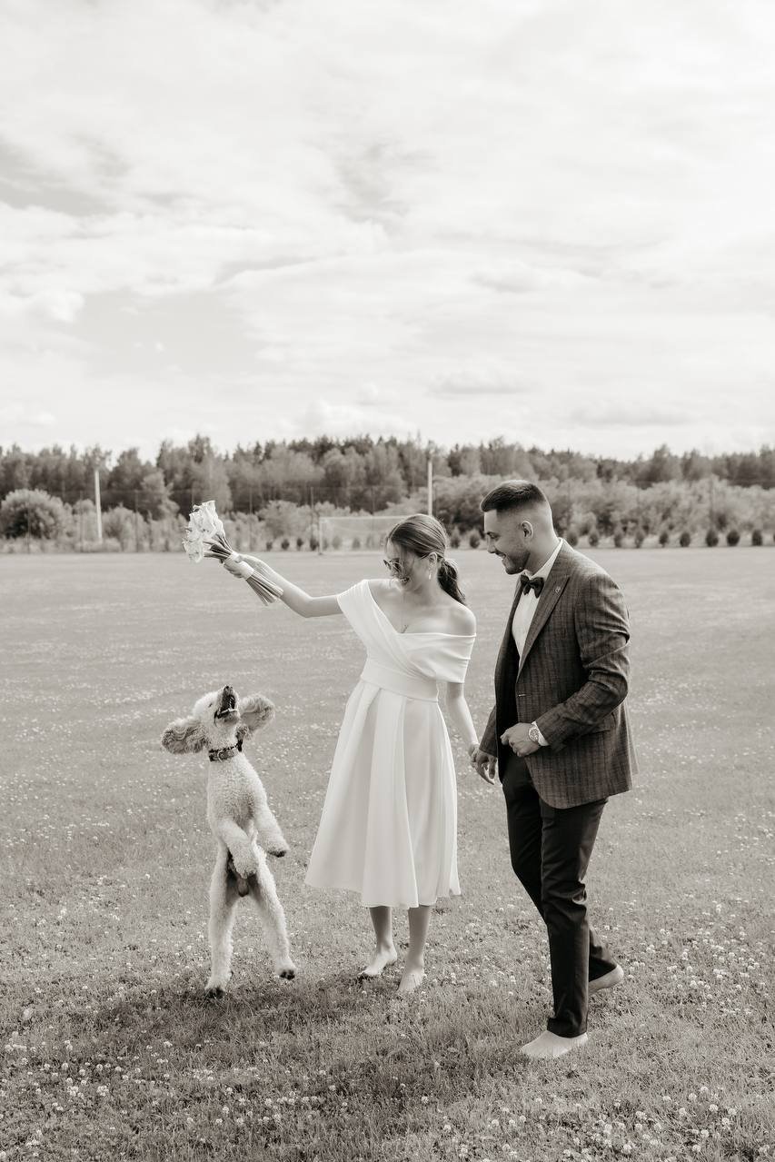 Здебільшого традиційним вбранням наречених залишаються українські вишиванки, а ось «родзинкою» весілля стають домашні улюбленці. Так і у волинських молодят чотирилапими гостями стали поважний лабрадор Люцик та милий королівський пудель Сьома, завдяки яким особливий день їх господарів виявився душевним та надзвичайно зворушливим.