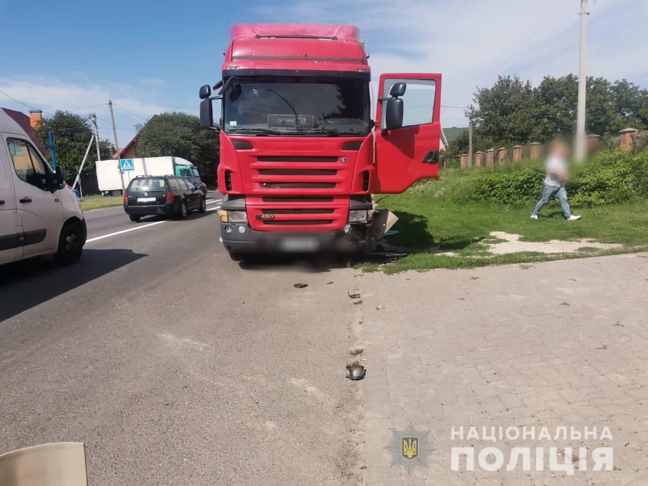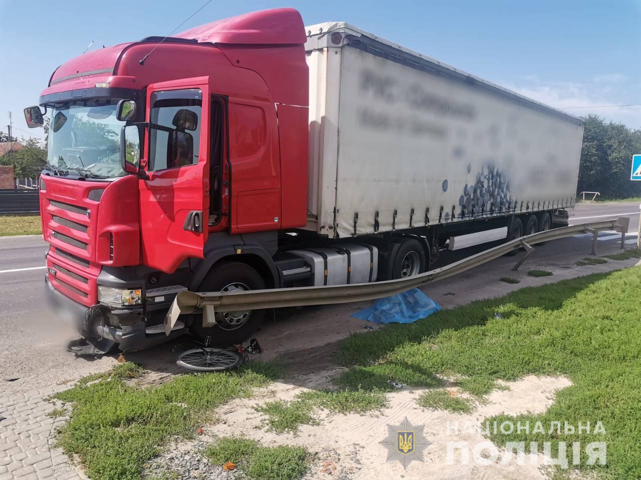 31-річний водій вантажівки SСANIA здійснив наїзд на велосипедиста, який їхав у попутному напрямку та раптово змінив напрямок руху. Від отриманих травм чоловік загинув, наразі його особу встановлюють.