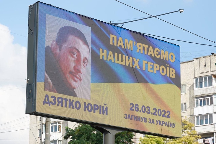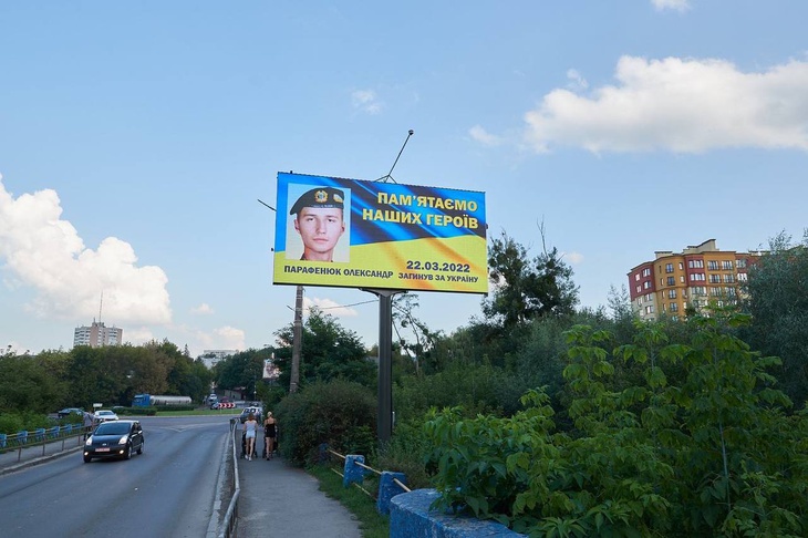 У Луцьку на рекламних led-екранах розмістили фото мешканців громади, які загинули у боротьбі за вільну Україну.