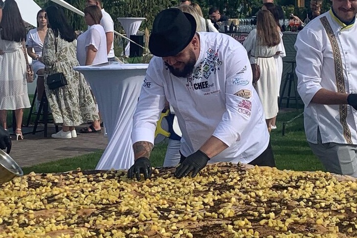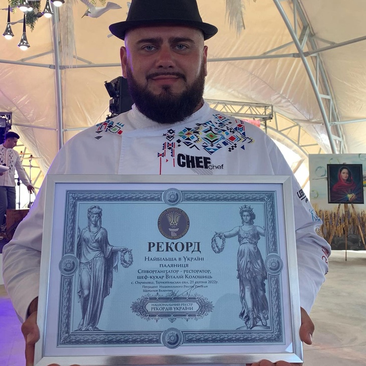 Піцайоло з Чорткова Віталій Колошиць приготував рекордно велику паляницю, діаметром 3 метри 40 сантиметрів, про що він написав у Facebook.