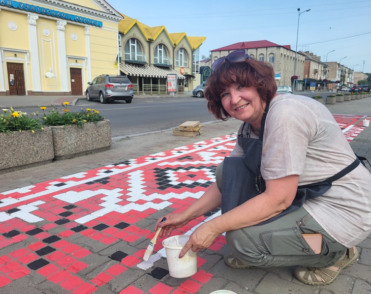 Працює над орнаментом директорка дитячої художньої школи імені Андроника Лазарчука Олена Цьомик з юними помічниками, – повідомляє Ковельська міська рада.