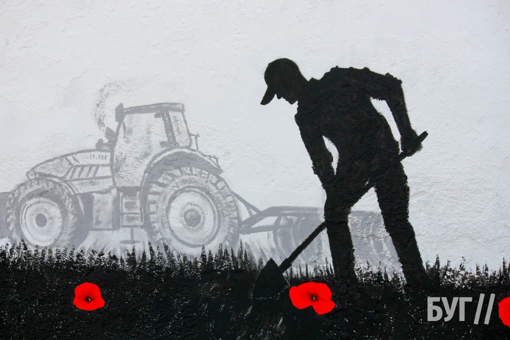 “На муралі будуть фермери, військові та медики – усі хто йде до Перемоги на своєму фронті. Створення стінопису трохи затягнулося через непогоду, але ми сподіваємось найближчим часом ви вже зможете побачити результат нашої праці”, – зазначив художник.