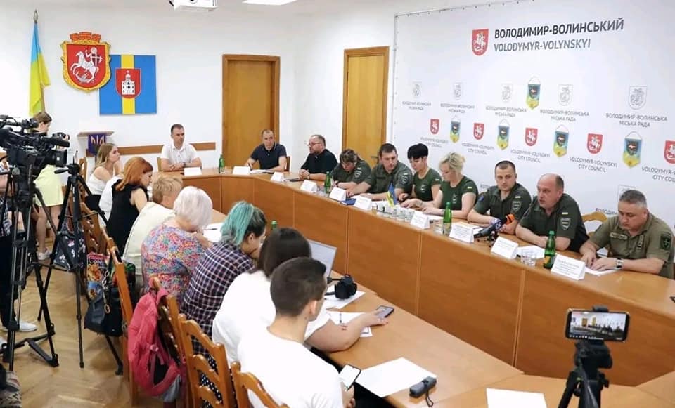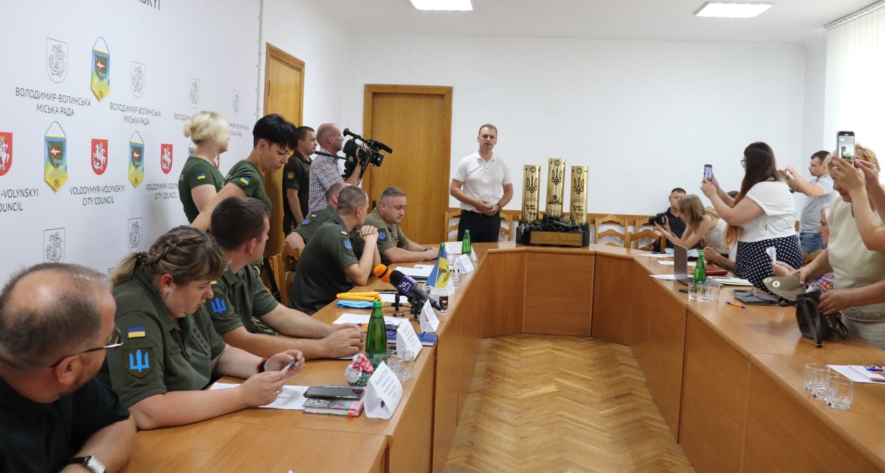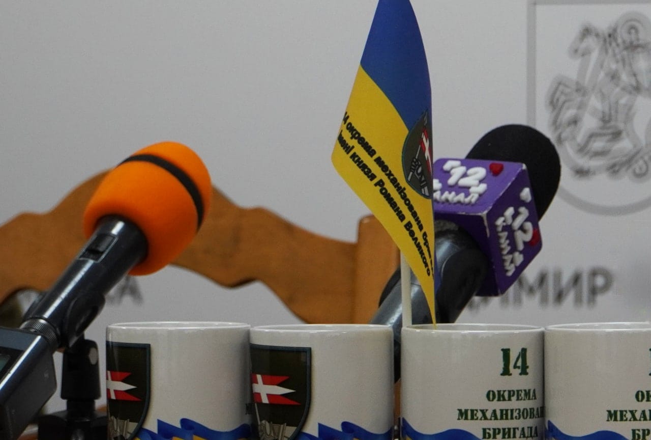 Брифінг для представників засобів масової інформації керівники підрозділів волинської бригади провели з ініціативи командира 14-ї ОМБр Олександра Охріменка у приміщенні Володимирської міської ради.