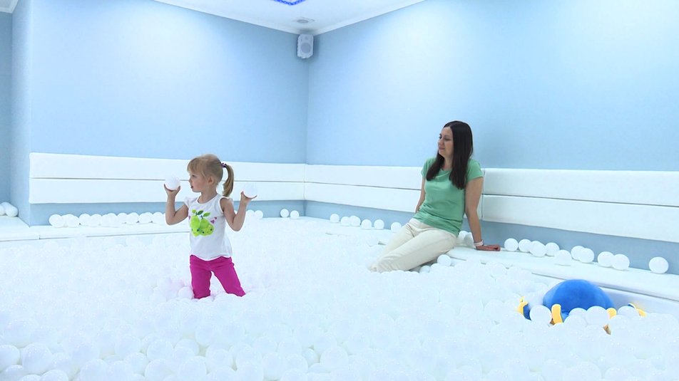 Басейн наповнили спеціальними кульками, щоб дати змогу дорослим розслабитись в укритті. Таке занурення дає приємні відчуття від масажу.