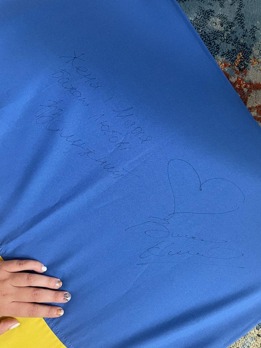 "Після події діти дістали прапор і попросили наших почесних гостей на ньому розписатися. Дякую усім, хто розділив з нами наші емоції у цей день. Віримо у перемогу ЗСУ і щасливе майбутнє наших дітей у вільній Україні", - поділилася мати нареченою.