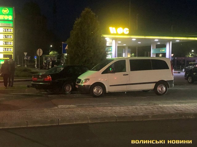 Від удару «Мерседес» розвернуло, а «БМВ» внаслідок зіткнення занесло у поворот до АЗС, де автівка зіткнулась із бусом. На щастя, в аварії ніхто не постраждав.