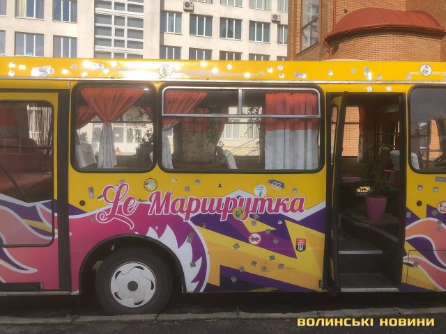 Лесина маршрутка відрізняється інтер’єром: всередині вона переобладнана в затишний домашній простір із баром та лаунж-зоною, в декорі – кітч і етнофолк. Завішана всілякими сувенірами, привезеними із закордонних поїздок (африканські маски, сомбреро, калібаси, статуетки, перуанські килими).