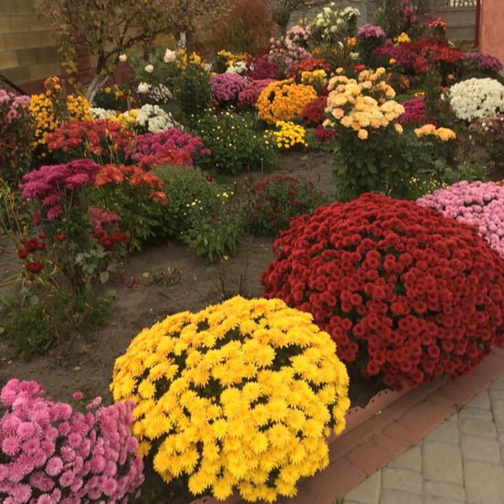 Частина хризантем на її обійсті вже відцвіла, однак є ще грядки, які почнуть квітнути тільки вкінці вересня й до перших снігів. Йдучи поміж зеленими кущиками, які ще не розпустилися барвами, вона запросто може назвати де який сорт, навчилася розрізняти їх навіть за листочками. На зиму кожен з них буде обрізати та укривати хвоєю. Використовувати для цього перегній чи листя не радить – це призведе до масової появи шкідників і грибків.