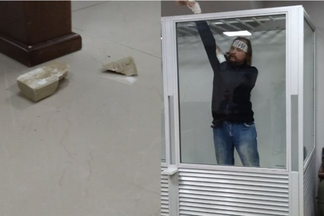 Під час оголошення вироку засуджений жбурнув у бік суддів шматок господарського мила та сказав: "помийте своє життя тюремним милом" і додав, що винним себе не вважає.