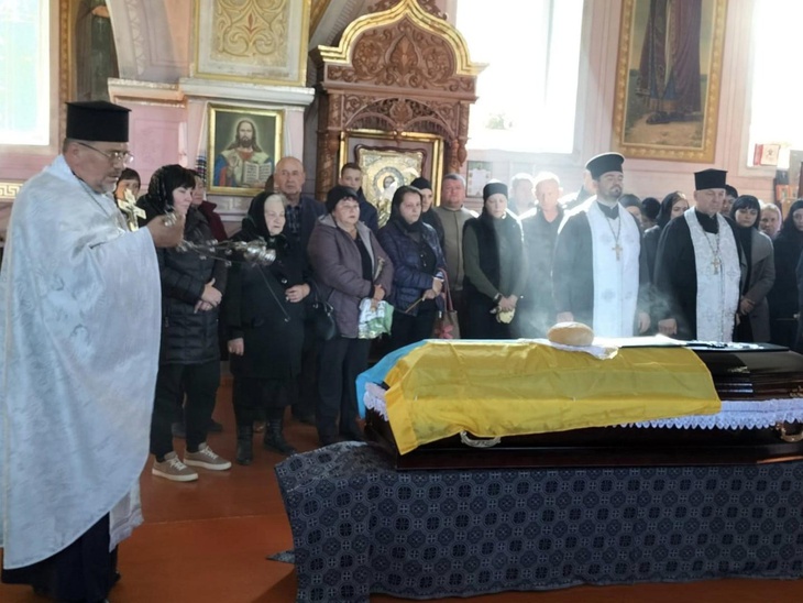 Не довго побувши вдома, траурна процесія вирушила до Свято-Михайлівського храму. Тут священники ПЦУ відспівали загиблого Віталія Кавку та помолилися за його душу. Під звуки поховального маршу й військового залпу молодого захисника провели до місця вічного спочинку та схоронили на символічній Алеї Слави, поруч з такими ж патріотами України – Героями Небесної варти.