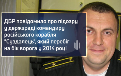 «Капітан ІІІ рангу після захоплення збройними формуваннями РФ його частини в Севастополі добровільно присягнув на вірність агресору. На сьогодні він командує російським протичовновим кораблем «Суздалець», який бере участь у російській збройній агресії проти України», - йдеться в повідомленні.