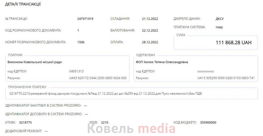 Відповідна закупівля на електронній системі публічних закупівель Prozorro відбулася 26 грудня 2022 року, повідомляє «Ковель media».