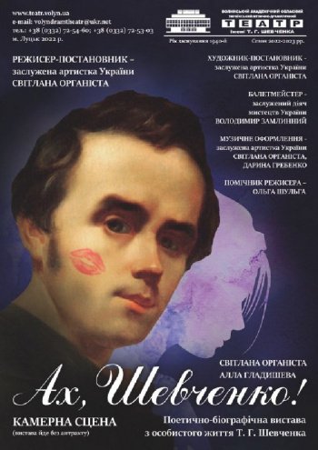 Уже сьогодні, 10 січня, на камерній сцені покажуть поетично-біографічну виставу з особистого життя Кобзаря «Ах, Шевченко!» (режисерка – заслужена артистка України Світлана Органіста).