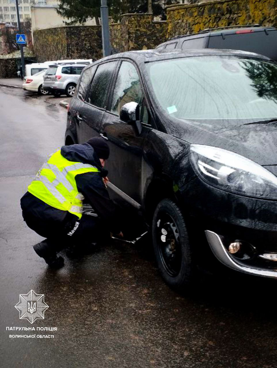 Поліцейські отримали повідомлення, що на вулиці Ярощука у Луцьку водійка просить їхньої допомоги. Прибувши за вказаною адресою, патрульні виявили кермувальницю Renault: вона пробила колесо в автівці та не могла самостійно встановити запасне.