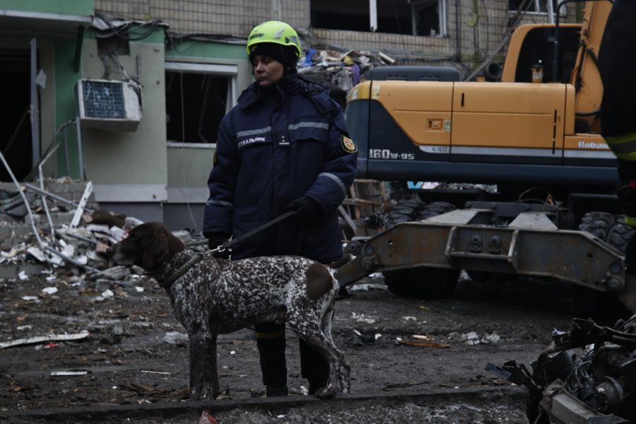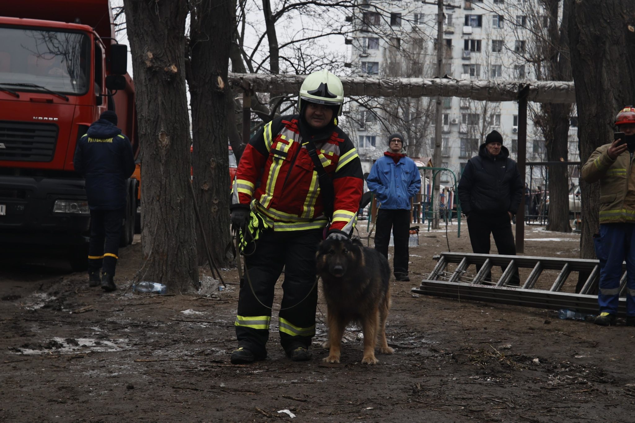 Кінолог-рятувальниця Лариса розповіла: “Ми шукаємо живих людей, імовірно живих людей та загиблих. За позначками наших собак знайдено вже шість тіл”.