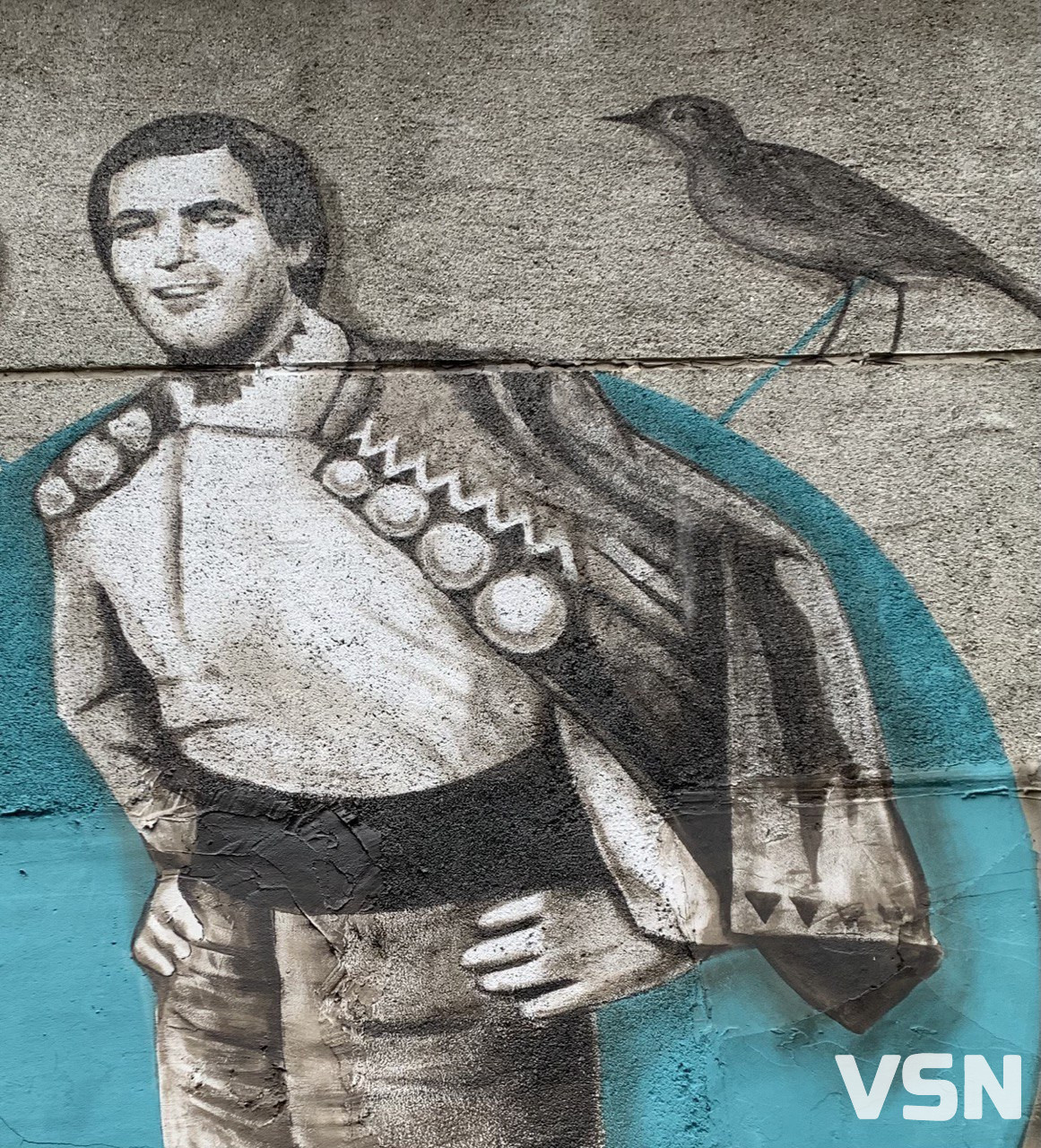 Наступним з'явилося зображення іншого легендарного музиканта із Луцька. На цьому муралі на будівлі міськрайонного суду на вулиці Лесі Українки - Василь Зінкевич в образі героя легендарного фільму «Червона рута».