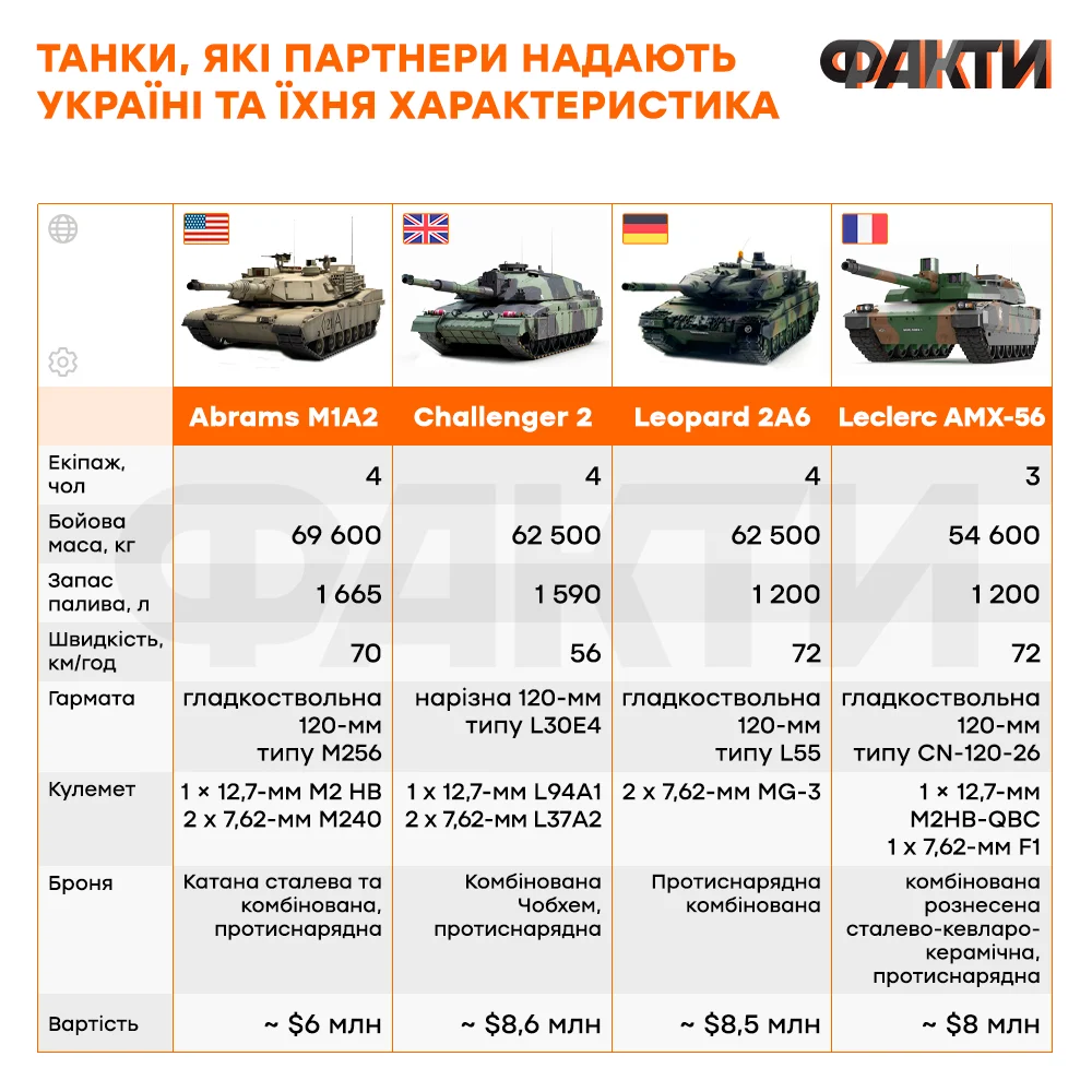 При цьому військовий експерт вважає, що попри те, що Україна отримає одразу три різновидності танків – німецькі Leopard, американські Abrams та британські Challenger, обслуговування та ремонт танків не мають стати суттєвою проблемою.