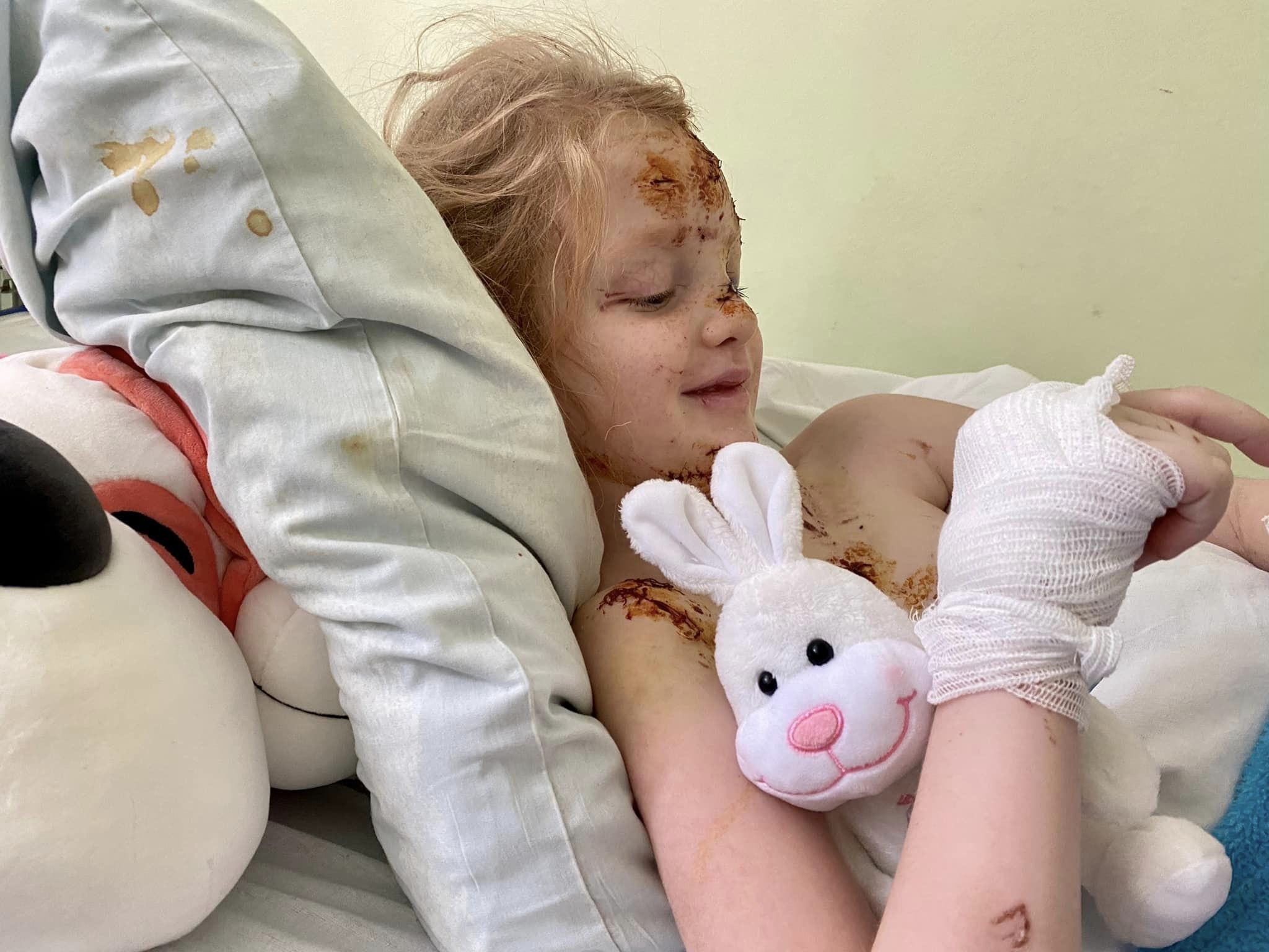 Лікарі зберегли око дівчинки, але бачити ним вона не може. Дитина пережила сім хірургічних втручать. Зараз вона продовжує лікування та займається з психологом.