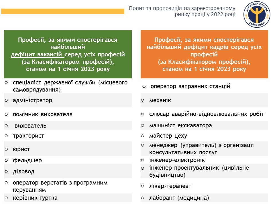 У 2022 році база вакансій обласного центру зайнятості налічувала 16,6 тисячі позицій. Її щодня оновлюють. Спеціальності різні, як і рівень заробітної плати. Машиністу гірничих виїмкових машин минулоріч платили 22 500 грн, прохіднику на шахті – 20 774 грн, а лікарям – 20 тисяч заробітної плати. Нині найбільш затребувані: водії автотранспортних засобів, продавці, кухарі, касири торгівельної зали, бухгалтери.